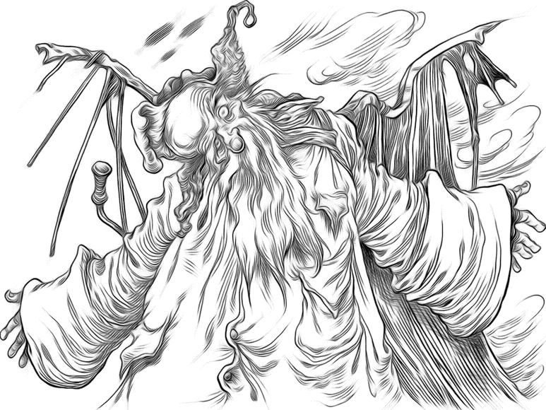 – С тобой все кончено! – визгливо кричала Мамаша Твердопух. – Кончено, понимаешь?! Я сделаю так, что твоя нога больше никогда не ступит на борт небесного корабля! Я… Раздался приглушенный стук в дверь. Мамаша Твердопух замерла. Дверь открылась. – Вы! – воскликнула Твердопух. – Милорд! – изумленно вымолвил Облачный Волк и упал на колени. Прутик в замешательстве разглядывал вновь прибывшего. Он был старый – очень-очень старый, – с длинными седыми волосами и во время ходьбы опирался на посох. В разорванных сандалиях, дырявых перчатках и залатанной мантии он выглядел как жалкий бродяга. Но Облачный Волк стоял перед ним на коленях! Прутик повернулся за объяснениями к Форфикюлю, но тот, прикрыв рот бледной костлявой лапкой, настойчиво шептал что-то на ухо Мамаше Твердопух. Прутик много бы отдал, чтобы узнать, о чем они говорят, но, как ни вслушивался, до него доносилось только заговорщическое «ш-ш-ш»…