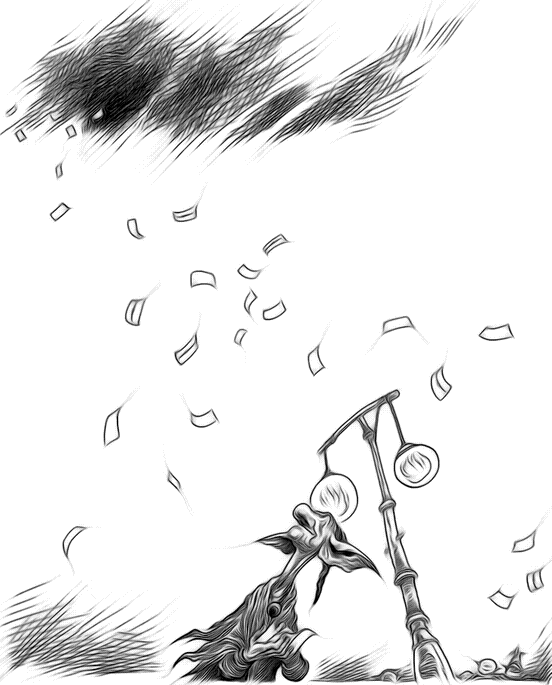 Когда осела пыль, Прутик увидел, что крыша находящейся напротив лавки скобяных изделий смята. Два торговых лотка сровняло с землей. А посреди улицы лежал несчастный, которого задавило тяжестью разорвавшейся цепи. Прутик уставился на знакомые жалкие лохмотья и башмаки. Это был тот самый глыботрог! «Тебе следовало бы прислушаться к словам душегубца», – подумал Прутик, прикоснувшись к амулету на шее. Но теперь уже было поздно. Удача отвернулась от глыботрога навсегда.