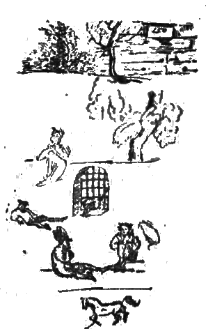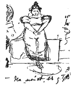 В таком кругу развивались детские впечатления Александра Сергеевича Пушкина, и немудрено, что девятилетнему мальчику захотелось попробовать себя в искусстве подражания и сделаться автором… Любимым его упражнением сначала было импровизировать маленькие комедии и самому разыгрывать их перед сестрою, которая в этом случае составляла всю публику и произносила свой суд. Однажды как-то она освистала его пьеску «Похититель». Он не обиделся и сам на себя написал эпиграмму: