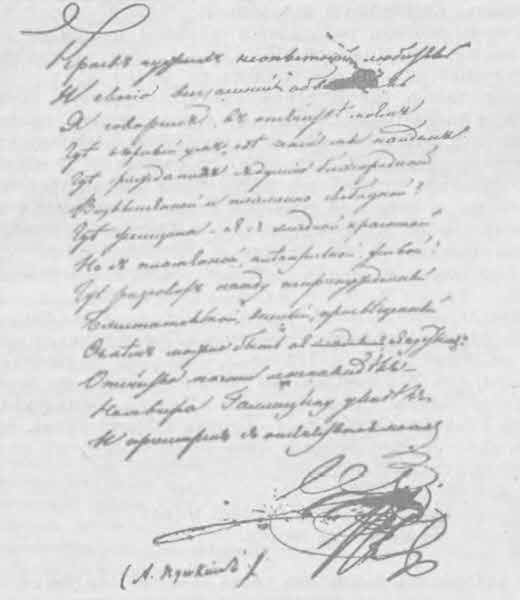 А. С. Пушкин — А. О. Ишимовой (последнее письмо А. С. Пушкина) Милостивая Государыня Александра Осиповна. Крайне жалею, что мне невозможно будет сегодня явиться на ваше приглашение. Покамест, честь имею препроводить к Вам Barry Cornwall. — Вы найдете в конце книги пьесы, отмеченные карандашом, переведите их как умеете — уверяю Вас, что переведете как нельзя лучше. Сегодня я нечаянно открыл Вашу историю в рассказах и поневоле зачитался. Вот как надобно писать! С глубочайшим почтеньем и совершенной преданностью честь имею быть, Милостивая Государыня, Вашим покорнейшим слугою