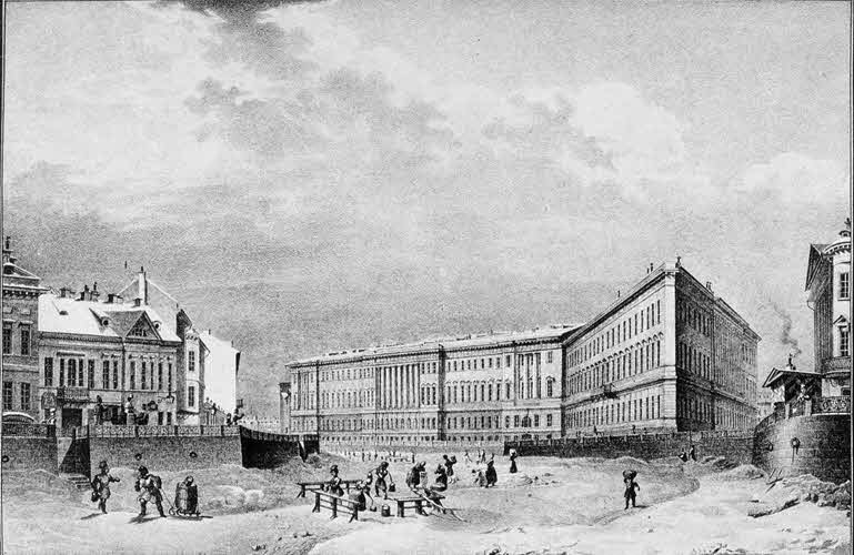 В лицейской зале, между колоннами, поставлен был большой стол, покрытый красным сукном, с золотой бахромой. На этом столе лежала величайшая грамота, дарованная Лицею. По правую сторону стояли мы в три ряда; при нас — директор, инспектор и гувернеры; по левую — профессора и другие чиновники лицейского управления. Остальное пространство залы, на некотором расстоянии от стола, было все уставлено рядами кресел для публики. Приглашены были все высшие сановники и педагоги из Петербурга. Когда все общество собралось, министр пригласил государя… Приветствовав все собрание, царская фамилия заняла кресла в первом ряду… Среди общего молчания началось чтение. Первый вышел И. И. Мартынов, тогдашний директор департамента министерства народного просвещения. Дребезжащим, тонким голосом прочел манифест об учреждении Лицея и высочайше дарованную ему грамоту. (Единственное из закрытых учебных заведений того времени, которого устав гласил: «телесные наказания запрещаются»… Вслед за Мартыновым робко выдвинулся на сцену наш директор В. Ф. Малиновский, с свертком в руке. Бледный, как смерть, начал что-то читать; читал довольно долго, но вряд ли многие могли его слышать, так голос его был слаб и прерывист. Заметно было, что сидевшие в задних рядах начали перешептываться и прислоняться к спинкам кресел… Кончивши речь свою, оратор поклонился и еле живой возвратился на свое место. Мы, школьники, больше всех были рады, что он замолк: гости сидели, а мы должны были стоя слушать его и ничего не слышать. Смело, бодро выступил профессор политических наук А. П. Куницын и начал не читать, а говорить об обязанностях гражданина и воина. Публика, при появлении нового оратора, под влиянием предшествовавшего впечатления, видимо, пугалась и вооружалась терпением; но по мере того, как раздавался его чистый, звучный и внятный голос, все оживлялись, и к концу его замечательной речи слушатели были уже не опрокинуты к спинкам кресел, а в наклоненном положении к говорившему: верный знак общего внимания и одобрения! В продолжение всей речи ни разу не было упомянуто о государе…