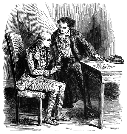 Пока Данглар, вдохновляемый ненавистью, старается очернить своего товарища в глазах арматора, последуем за Дантесом, который, пройдя всю улицу Каннебьер, миновал улицу Ноайль, вошел в небольшой дом по левой стороне Мельянских аллей, быстро поднялся по темной лестнице на пятый этаж и, держась одной рукой за перила, а другую прижимая к сильно бьющемуся сердцу, остановился перед полуотворенной дверью, через которую можно было видеть всю каморку. В этой каморке жил его отец. Известие о прибытии «Фараона» не дошло еще до старика, который, взобравшись на стул, дрожащей рукой поправлял настурции и ломоносы, обвивавшие его окошко. Вдруг кто-то обхватил его сзади, и он услышал знакомый голос: — Отец! Старик вскрикнул и обернулся. Увидев сына, он бросился в его объятия, весь бледный и дрожащий. — Что с вами, отец? — спросил юноша с беспокойством. — Вы больны? — Нет, нет, милый Эдмон, сын мой, дитя мое, нет! Но я не ждал тебя… Ты застал меня врасплох… это от радости. Боже мой! Мне кажется, что я умру! — Успокойтесь, отец, это же я. Все говорят, что радость не может повредить, вот почему я так прямо и вошел к вам. Улыбнитесь, не смотрите на меня безумными глазами. Я вернулся домой, и все будет хорошо. — Тем лучше, дитя мое, — отвечал старик, — но как же все будет хорошо? Разве мы больше не расстанемся? Расскажи же мне о твоем счастье! — Да простит мне господь, что я радуюсь счастью, построенному на горе целой семьи, но, видит бог, я не желал этого счастья. Оно пришло само собой, и у меня нет сил печалиться. Капитан Леклер скончался, и весьма вероятно, что благодаря покровительству Морреля я получу его место. Понимаете, отец? В двадцать лет я буду капитаном! Сто луидоров жалованья и доля в прибылях! Разве мог я, бедный матрос, ожидать этого? — Да, сын мой, ты прав, — сказал старик, — это большое счастье. — И я хочу, чтобы на первые же деньги вы завели себе домик с садом для ваших ломоносов, настурций и жимолости… Но что с вами, отец? Вам дурно? — Ничего, ничего… сейчас пройдет! Силы изменили старику, и он откинулся назад. — Сейчас, отец! Выпейте стакан вина, это вас подкрепит. Где у вас вино? — Нет, спасибо, не ищи, не надо, — сказал старик, стараясь удержать сына. — Как не надо!.. Скажите, где вино? Он начал шарить в шкафу. — Не ищи… — сказал старик. — Вина нет… — Как нет? — вскричал Дантес. Он с испугом глядел то на впалые бледные щеки старика, то на пустые полки. — Как нет вина? Вам не хватило денег, отец? — У меня всего вдоволь, раз ты со мною, — отвечал старик. — Однако же, — прошептал Дантес, отирая пот с лица, — я вам оставил двести франков назад тому три месяца, когда уезжал. — Да, да, Эдмон, но ты, уезжая, забыл вернуть должок соседу Кадруссу; он мне об этом напомнил и сказал, что если я не заплачу за тебя, то он пойдет к господину Моррелю. Я боялся, что это повредит тебе… — И что же? — Я и заплатил. — Но ведь я был должен Кадруссу сто сорок франков! — вскричал Дантес. — Да, — пролепетал старик. — И вы их заплатили из двухсот франков, которые я вам оставил? Старик кивнул головой.
