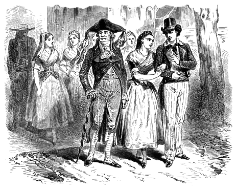 На следующий день утро выдалось теплое и ясное. Солнце встало яркое и сверкающее, и его первые пурпурные лучи расцветили рубинами пенистые гребни волн. Пир был приготовлен во втором этаже того самого «Резерва», с беседкой которого мы уже знакомы. Это была большая зала, в шесть окон, и над каждым окном (бог весть почему) было начертано имя одного из крупнейших французских городов. Вдоль этих окон шла галерея, деревянная, как и все здание. Хотя обед назначен был только в полдень, однако уже с одиннадцати часов по галерее прогуливались нетерпеливые гости. То были моряки с «Фараона» и несколько солдат, приятелей Дантеса. Все они из уважения к жениху и невесте нарядились в парадное платье. Среди гостей пронесся слух, что свадебный пир почтят своим присутствием хозяева «Фараона», но это была такая честь для Дантеса, что никто не решался этому поверить. Однако Данглар, придя вместе с Кадруссом, в свою очередь, подтвердил это известие. Утром он сам видел г-на Морреля, и г-н Моррель сказал ему, что будет обедать в «Резерве». И в самом деле через несколько минут в залу вошел Моррель. Матросы приветствовали его дружными рукоплесканиями. Присутствие арматора служило для них подтверждением уже распространившегося слуха, что Дантес будет назначен капитаном. Они очень любили Дантеса и выражали благодарность своему хозяину за то, что хоть раз его выбор совпал с их желаниями. Едва г-н Моррель вошел, как, по единодушному требованию, Данглара и Кадрусса послали к жениху с поручением известить его о прибытии арматора, появление которого возбудило всеобщую радость, и сказать ему, чтобы он поторопился. Данглар и Кадрусс пустились бегом, но не пробежали и ста шагов, как встретили жениха и невесту. Четыре каталанки, подруги Мерседес, провожали невесту; Эдмон вел ее под руку. Рядом с невестой шел старик Дантес, а сзади Фернан. Злобная улыбка кривила его губы.