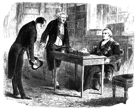 Вильфор поклонился и сделал несколько шагов в ожидании вопроса короля. — Господин де Вильфор, — начал Людовик XVIII, — герцог Блакас говорит, что вы имеете сообщить нам нечто важное. — Сир, герцог говорит правду, и я надеюсь, что и вашему величеству угодно будет согласиться с ним. — Прежде всего так ли велика опасность, как меня хотят уверить? — Ваше величество, я считаю ее серьезной; но благодаря моей поспешности она, надеюсь, предотвратима. — Говорите подробно, не стесняйтесь, — сказал король, начиная и сам заражаться волнением, которое отражалось на лице герцога и в голосе Вильфора, — говорите, но начните сначала, я во всем и везде люблю порядок. — Я представлю вашему величеству подробный отчет; но прошу извинить, если мое смущение несколько затемнит смысл моих слов. Взгляд, брошенный на короля после этого вкрадчивого вступления, сказал Вильфору, что августейший собеседник внимает ему с благосклонностью, и он продолжал: — Ваше величество, я приехал со всей поспешностью в Париж, чтобы уведомить ваше величество о том, что по долгу службы я открыл не какое-нибудь обыденное и пустое сообщничество, какие каждый день затеваются в низших слоях населения и войска, но подлинный заговор, который угрожает трону вашего величества. Сир, узурпатор снаряжает три корабля; он замышляет какое-то дело, может быть безумное, но тем не менее и грозное, несмотря на все его безумие. В настоящую минуту он уже, должно быть, покинул остров Эльба и направился — куда? — не знаю. Без сомнений, он попытается высадиться либо в Неаполе, либо на берегах Тосканы, а может быть, даже и во Франции. Вашему величеству небезызвестно, что властитель острова Эльба сохранил сношения и с Италией, и с Францией. — Да, — отвечал король в сильном волнении, — совсем недавно мы узнали, что бонапартисты собираются на улице Сен-Жак; но продолжайте, прошу вас; как вы получили все эти сведения? — Ваше величество, я почерпнул их из допроса, который я учинил одному марсельскому моряку. Я давно начал следить за ним и в самый день моего отъезда отдал приказ о его аресте. Этот человек, несомненный бонапартист, тайно ездил на остров Эльба; там он виделся с маршалом, и тот дал ему устное поручение к одному парижскому бонапартисту, имени которого я от него так и не добился; но поручение состояло в том, чтобы подготовить умы к возвращению (прошу помнить, ваше величество, что я передаю слова подсудимого), к возвращению, которое должно последовать в самое ближайшее время. — А где этот человек? — спросил король. — В тюрьме, ваше величество. — И дело показалось вам серьезным? — Настолько серьезным, что, узнав о нем на семейном торжестве, в самый день моего обручения, я тотчас все бросил, и невесту и друзей, все отложил до другого времени и явился повергнуть к стопам вашего величества и мои опасения, и заверения в моей преданности. — Да, — сказал Людовик, — ведь вы должны были жениться на мадемуазель де Сен-Меран. — На дочери одного из преданнейших ваших слуг. — Да, да; но вернемся к этому сообщничеству, господин де Вильфор. — Ваше величество, боюсь, что это нечто большее, чем сообщничество, боюсь, что это заговор. — В наше время, — отвечал Людовик с улыбкой, — легко затеять заговор, но трудно привести в исполнение уже потому, что мы, недавно возвратясь на престол наших предков, обращаем взгляд одновременно на про