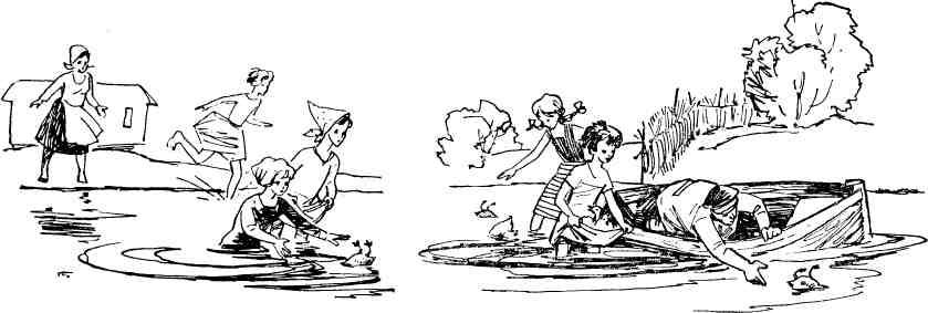 Школьники принялись раскладывать корм в ящички, прибитые к стенкам квадратов-двориков. Утята снова сбились в кучу у задней стены сарая. Тогда все вышли и стали наблюдать за ними из дверей.