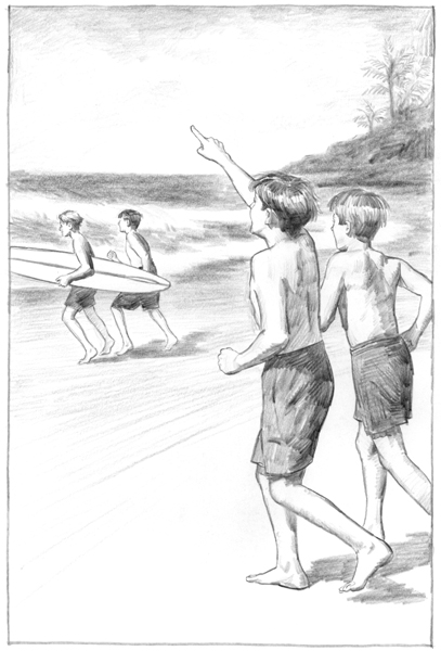 Жара, накрывшая Айдавилл, четвёртого июля не уменьшилась ни на йоту. – Очередное пекло, – заметил шеф Браун, когда Энциклопедия спустился на завтрак. – Да уж, – согласился Энциклопедия. Посмотрев в окно, он увидел, что градусник возле гаража уже показывал семьдесят восемь градусов[17]. После завтрака зазвонил телефон. Это был друг Энциклопедии Бенни Бреслин. – Послушай, Энциклопедия! – взволнованно выпалил Бенни. – Я вчера купил новую доску для сёрфинга. Хочешь пойти со мной на пляж и попробовать? От такого приглашения Энциклопедия не мог отказаться. – Ещё бы, – выдохнул он. – Хорошо, – ответил Бенни. – Мы с кузенами будем там через тридцать минут. Энциклопедию не обеспокоило известие о двоюродных братцах Бенни. Он встречался с Тоддом и Гартом раньше. Ни тот, ни другой не относились к быстро соображающим. – Мама, не возражаешь, если я пойду на пляж с Бенни и его кузенами? – спросил Энциклопедия. – Конечно, дорогой, – ответила миссис Браун. – Но вернись к двум часам – сегодня у тебя назначен визит к стоматологу Энциклопедия быстро натянул плавки и помчался на встречу с Бенни и его двоюродными братьями. Когда мальчики пришли на пляж, там было только несколько других пловцов и сёрферов. Мальчики заперли свои велосипеды, а затем разложили полотенца возле кривых сосен, росших вдоль дюн. Поскольку было ещё рано, деревья отбрасывали длинную тень. – Отличная доска для сёрфинга, – присмотрелся Энциклопедия к новой доске Бенни. Она была ярко-жёлтой с изображением сёрфера на гребне большой волны. – Спасибо, – гордо ответил Бенни. – Не могу дождаться, чтобы попробовать её. Она… Но не успел Бенни закончить, как Гарт протянул руку и схватил доску. – А ты попозже, Бенни, – крикнул Тодд, бросившись к океану вслед за братом. – Эй! – завопил Бенни. – Я не говорил, что вы можете кататься первыми! Ни Гарт, ни Тодд не обратили на него ни малейшего внимания. Вместо этого, вбежав в океан, Гарт бросил доску в воду, а затем поплыл за ней. – Вернись с моей доской, Гарт! – орал Бенни. Энциклопедия взмахнул руками, пытаясь привлечь внимание мальчиков. Но без толку. Наконец спасатель, которого знал Бенни, заметил происходящее. – Нужна помощь, Бенни? – спросил он. – Кузены забрали мою новую доску, прежде чем у меня появилась возможность попробовать её самостоятельно, – кивнул Бенни.