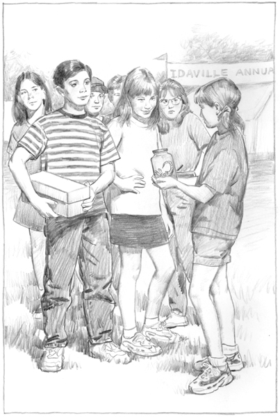 – Три по вертикали – жулик или мошенник из девяти букв, – сообщила Салли Энциклопедии. Детективы работали над разгадкой кроссворда в «Айдавилл Ньюс». Вчера им потребовалось всего семь минут и сорок две секунды, чтобы справиться. Сегодня они пытались побить свой собственный рекорд. – Это просто, – ответил Энциклопедия. – Шарлатан. Салли записала ответ. – Кстати, о мошеннике из девяти букв – у Гвендолин сегодня аукцион. – Слышал, – ответил Энциклопедия. – А поскольку уже почти четвёртое июля[16], она выставляет на аукцион вещи, которые раньше принадлежали президентам США. – Во всяком случае, она это утверждает, – с отвращением процедила Салли. Гвендолин Харрис была восьмиклассницей, собиравшей антиквариат. По крайней мере, так она называла вещи, которые выбирала из выброшенного мусора. Примерно раз в месяц Гвендолин выставляла собранное барахло на торги. Каким-то образом ей удавалось заставить людей думать, что её «антиквариат» чего-то стоит. Энциклопедия читал подсказку для номера шестнадцать по горизонтали, когда двое из его лучших друзей, Бенни Бреслин и Чарли Стюарт, ворвались в гараж. – Угадай, что это! – выпалил Бенни. Он гордо поднял красный галстук-бабочку. – Я только что купил галстук-бабочку, раньше принадлежавший Гарри С. Трумэну. Я подарю его маме на день рождения. Салли нахмурилась. – Не говори мне, я сама угадаю – Гвендолин сказала, что это антиквариат стоимостью в тысячи долларов. – Ну, пока нет, – сообщил ей Бенни. – Но Гвендолин уверяет, что если моя мама сохранит его в течение нескольких лет, он полностью окупит её выход на пенсию! Энциклопедия посмотрел на Чарли. – Надеюсь, ты ничего не купил у Гвендолин, – предположил он. – Конечно, купил! – Чарли поднял пару старых черных шлёпанцев. – Я купил пляжную обувь Рональда Рейгана. Он носил их, когда был губернатором Калифорнии. Бенни наконец заметил подозрительные взгляды на лицах детективов. – Ты думаешь, нас обманули? – Скажу так, Бенни, – хмуро буркнул Энциклопедия. – У меня такое чувство, что галстук-бабочка такой же подлинный, как и трёхдолларовая купюра. – О нет! – застонал Бенни, хлопнув себя по лбу. – Невозможно! Я не могу подарить маме фальшивый галстук-бабочку на день рождения. Ты должен помочь мне с Чарли вернуть деньги, Энциклопедия! – А мне больше ничего и не нужно, – сообщил Энциклопедия друзьям. Пятнадцать минут спустя Энциклопедия с Салли прибыли в дом Гвендолин. Президентский аукцион продолжался. Большая группа детей и взрослых собралась вокруг парадного крыльца дома Харрисов. Было так жарко, что некоторые стояли под зонтиками или обмахивались бумажными листами.