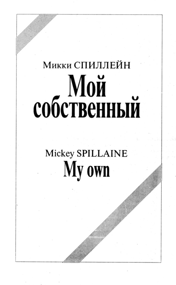 Презент от «Парадокса» ждет Вас! Содержание Дэвид АЛЕКСАНДЕР БРОДВЕЙ 9 Микки СПИЛЛЕЙН МОЙ СОБСТВЕННЫЙ 195 Эдгар УОЛЛЕС МАНИЯ 293 Литературно-художественное издание БРОДВЕЙ Романы Ответственный за выпуск Т.А.Стрельченя Составитель В.В.Шарпило Редакторы В.М.Стрельченя, В.Н.Шитик Корректор З.М.Машкевич Подписано в печать с оригинал-макета 5.01.95. Формат 84x108 1/32. Объем 14,0 печ. л. Печать офсетная. Тираж 50 000 экз. Заказ № 1328 Рекламно-производственное общество «ПАРАДОКС». Лицензия ЛВ N 738. 220123 Минск, ул. М.Богдановича, 55, офис 48. Для писем: 220123 Минск, а/я 172. Отпечатано с оригинал-макета заказчика 1 типографии издательства «Белорусский Дом печати» 220013 Минск, пр. Ф.Скорины, 79. ВНИМАНИЕ, КОНКУРС! ЛОТОДОКС Чтобы выиграть приз, Вам достаточно указать номера страниц в этой книге, на которых впервые упоминаются имена и даты героев книги «БРОДВЕЙ»: 1. Возраст ВАЛЬДО стр. 2. ДЖ. ДЕНХАЙМ стр. 3. М. БОРЛИНГ стр. 4. М. ДЕЙН стр. 5. Мисс БЕЛЬФЕР стр. и отгадать наши загадки: Попробуй, отгадай! ЗАГАДКА-ПАРАДОКС