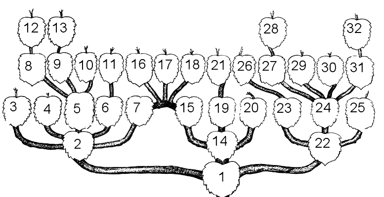 Урсула Маккар. Род. в 1791 г. Вышла замуж в 1810 г. за рабочего шляпника Муре, здорового и уравновешенного; от него у нее трое детей. Умерла от чахотки в 1840 году. (Смешение путем сочетания. Преобладает духовное и физическое сходство с матерью).15. Франсуа Муре