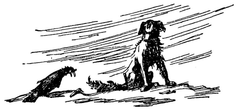 Турман стремглав бежал из деревни. Перескакивая через канаву, он заметил в траве окровавленную оскаленную морду собаки. Приглядевшись, мальчик понял, что от собаки остались только голова и передние ноги; дальше чернела развороченная земля. Мальчик еще быстрее пустился домой.