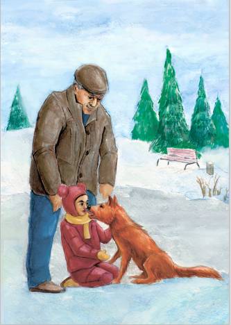 Внучка с дедушкой гуляли солнечным морозным днём и внезапно повстречались на бульваре с рыжим псом.