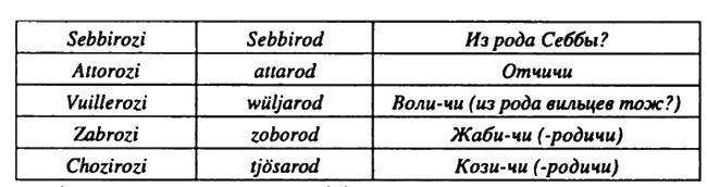 — от рода рускаго — Карлы, Инегелдъ, Фарлофъ, Веремудъ, Рулавъ, Гуды, Руалдь, Карпъ, Фрелавъ, Рюаръ, Актову, Труаігь, Лидуль, Фостъ, Стемиръ, иже послали от Олта, великаго князя рускаго…