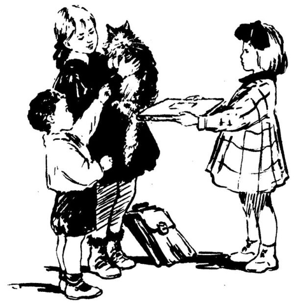 Высокий широкоплечий человек, которого Владик называл по имени и отчеству, — а как, Женя от волнения тут же забыл, — принял мальчиков в комнате, где на стенах висели таблицы с изображением разных животных. — Приехала, значит, выдра Маська? — сказал он приветливо. — Очень приятно. Вася показал на Женю: — Это он дарит Маську в зоосад. — Мы очень благодарны Жене Сомову за подарок, — ответил человек и попросил какую-то девушку: — Принеси, пожалуйста, клетку. — Она в клетке будет жить? — упавшим голосом спросил Женя. — Она не любит, когда запертая. — Совсем немножко посидит в клетке, — успокоил его зоолог. — Только пока мы её познакомим с другими выдрами. А то ещё на улицу выскочит отсюда. Ошеломлённая ездой в трамвае Маська сперва негромко и часто чокала, будто квохтала по-куриному. Когда её выпустили из кошёлки, она засновала по полу. А теперь занялась свежей морковкой, которую ей преподнёс зоолог. «Нет, этот дяденька Маську не обидит», — подумал Женя и немножко успокоился. — Это Владик ему сказал, как тебя зовут, — шептал Вася в Женино ухо. — Ещё по телефону, наверно, сказал. — Я бы вам весь зоопарк показал! — с сожалением говорил Владик. — Да в школу опоздаем к двум часам. Ну, мы в воскресенье приедем! Зоолог со всеми попрощался за руку, ещё раз поблагодарил Женю, и мальчики уехали. Жене было как-то не по себе, он сердито молчал весь обратный путь. Поглядев на него, Владик сказал: — Ей будет там хорошо. Честное пионерское. Дома Марья Сидоровна ждала Женю с разогретым обедом. Под конец она угостила его только что испечённым сладким пирогом. «Празднует, что Маськи нет», — неприязненно подумал Женя, но два куска пирога всё-таки съел. А старушка и не скрывала своей радости. Не замечая или не желая замечать Жениного надутого вида, она обращалась с ним ласково, как с родным внуком. В школе Женя вдруг чуть не поссорился с Лидой. Узнав поразительную новость — Маська в зоосаду! — девочка сильно обиделась: — Что же вы мне не сказали?! Я бы тоже поехала. Фу, какие противные! И какое вы имели право без меня везти Маську? Ведь укусила она меня! — Тебя бы всё равно мама не пустила — в трамвае ехать с больной рукой, — возразил Вася. — Мы ещё туда съездим все вместе двадцать раз. Из дому Женя увёз свою выдру, никого не предупредив, можно сказать, похитил её. Марья Сидоровна сама видела, как Владик зашёл за Женей и Васей и как Женя увязывал Маську в кошёлку. И, конечно, с великой радостью рассказала об этом маме и бабушке, когда они пришли с работы. Вернувшись из школы, Женя застал чисто прибранную квартиру. Бабушка кончала натирать паркет. Она бросила щётку, подошла к Жене и обняла его за плечи: — Навещу её непременно в первый же выходной! Жене показалось, что бабушке тоже скучно и тоскливо без выдры, хоть и ругала она её в последнее время. Он прижался к бабушке. И вдруг встал на цыпочки и, как бывало в пять лет, стал целовать её полные мягкие щёки. А спустя неделю, и спустя две недели, и спустя месяц, в зоопарке, в отделе хищников, можно было не раз увидеть мальчика и девочку. Они приезжали в зоопарк то с полной пожилой женщиной в пуховом платке, то с молодой женщиной, которую девочка называла «мамой», а мальчик «тётей Ирой». Ребята подолгу стояли перед решёткой, за которой находились два домика на краю водоёма. В водоёме плавали и ныряли три выдры. — Маська! Маська! — звали дети.