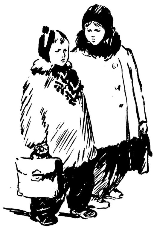 — Это тебе еда, — сказал он весело, показывая свёрток. — Тут наши две котлеты и у вас в шкафчике я взял пирожки с блюда, десяточек, наверно, загрёб. — Зачем так много? — Катя была очень смущена. — Ты же им ничего не оставил. Хочешь пирожок? — Им тоже осталось. Не хочу. Тебе бы хватило — ехать-то долго. То он говорил: «Луга — пустяковина», теперь — «ехать долго»… Но Катя промолчала. Теперь уже всё равно — близко ли, далеко ли ей ехать. Да хоть на край света — возврата нет! В трамвае Катя стала совать Саше монету в пятьдесят копеек, чтобы он взял билеты. Это она сегодня утром попросила у дяди денег: «На тетради, и я себе какую-нибудь книжку куплю». — «Конечно, купи, — сказал дядя и дал ей пятьдесят копеек. — Книжки покупать — дело хорошее». Если бы дядя знал, до чего Кате трудно врать! Саша отстранил Катину руку. — Тебе в дороге деньги вот как понадобятся! — сказал он наставительно и за трамвайные билеты заплатил сам, достав из кармана мелочь. На вокзале Катя опять протянула Саше деньги. — Билет на поезд возьми! — Пятьдесят копеек? Мало на билет, — сказал Саша. Катя покраснела от испуга. — У меня больше нету. Саша присвистнул: — Худо! — Но, взглянув на Катю, заговорил торопливо и весело: — Да ерунда! Зачем тебе билет? Поедешь зайцем. Ты маленькая, у тебя и билета не спросят. А увидишь контролёра, ты, как он будет проходить, перейди незаметно туда, где он уже проверял билеты. Так и проедешь великолепно! Даже в тамбур потихонечку выйди, чтобы тебя контролёр не заметил. «Люди спешили по перрону. Саша с Катей побежали, взявшись за руки. Кате казалось, что всё происходит не с ней, а с кем-то другим: зелёные вагоны на рельсах, чужие торопливые люди вокруг… Саша помог Кате влезть на высокую площадку вагона и вскочил вслед за ней. В вагоне он усадил её на скамейку и уселся сам. — Вот здесь и сиди. Удобно возле окошка. — А вдруг поезд сейчас пойдёт, а ты сел… Если бы Саша поехал вместе с ней! Да нет, ему же в школу надо… Кате вспомнилось, что на днях учительница обещала: некоторым отличникам, которые и ведут себя очень хорошо, выдадут похвальные грамоты. Девочки говорили: «Тебе, Катя, непременно дадут грамоту». Теперь ей ни за что не дадут никакой грамоты. Ведь ещё и с Гусевым она подралась вчера. — Неважно, если поезд тронется, я всегда успею соскочить, — похвастался Саша небрежным тоном, будто прыгать на ходу с пригородных поездов было для него привычным делом. Наверно, сейчас третий урок начался у них в первом классе. А её нету. И дома её не будет, когда дядя придёт с работы. «Где же Катя?» — спросит дядя. — Ведь меня хватятся дома, — сказала Катя. — Будут беспокоиться. — Ну и пусть немножко побеспокоятся, — беспечно сказал Саша. — А зачем они позволили от тебя Тимку увезти? — Дядя будет очень беспокоиться… На секунду Саша призадумался. — Знаешь, чего давай сделаем? Ты напиши записку, что где-нибудь задерживаешься у девчонки… — Я никогда не задерживаюсь. — Не хочешь, может, к Тимошке своему ехать? — Саша покосился на Катю. — Что ты! Что ты! Конечно, хочу! — Ну, так пиши записку, что ты… Есть бумага? У аккуратной Кати заныло под ложечкой, когда Саша вырвал полстраницы из её тетради по арифметике. Но ведь это вроде не она, Катя, а кто-то другой сидит в поезде; так что уж жалеть тетрадку? Саша продиктовал Кате записку. — А с места телеграмму пошлёшь. Они и не будут беспокоиться. 