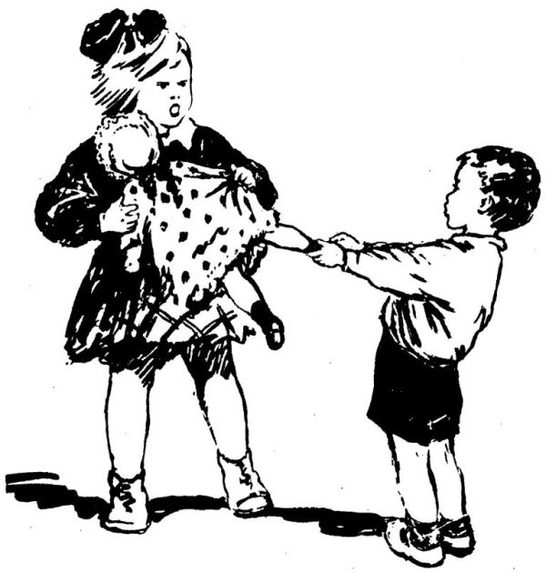 Лёля принесла свою Маринку и целлулоидного пупса, и у неё тоже стало двое детей. Игорёк закричал: — Я тоже буду мама! У меня будет дочка-слон! Нина рассмеялась: — Какая же ты мама? Ты — папа. А слон будет твой сыночек. Где он, этот слон? Ната покосилась на Лёлю. Лёля нахмурилась и расправила на Маринке платье. Тогда Ната села перед Игорьком на корточки, взяла его за руку и стала уговаривать: — Зачем тебе слон? Возьми своего Мишку. И ещё моего. Смотри, какие у тебя будут два хороших мохнатеньких сыночка. Но Игорёк заплакал: — Хочу, чтобы слон-сыночек! И до того разошёлся, что ногами затопал. Нина даже испугалась: — Да дайте вы ему скорей слона! Как расплакался, бедненький! Маленький мой, не плачь! — И она стала гладить Игорька по голове. — Ната, найди же слона! — Лёля… я принесу слона? — неуверенно спросила Ната. — Нельзя! Слон мой. Не дам! — отрезала Лёля. Игорёк пуще разревелся. Он отталкивал от себя Нину и Нату. У Нины от недоумения глаза округлились. — Почему ты ему не даёшь, Лёля? — спрашивала она. Неужели тебе не жалко, что он плачет? Да что это за слон такой особенный, что его нельзя дать Игорьку? Лёля надула губы и молча стала перевязывать ленточку в Маринкиных волосах. Вместо неё ответила Ната. — Он совсем мягкий, слон, и не разобьётся. У него хобот длинный. Игорёк его любит, а Лёля ни за что не даёт. В коридоре послышались торопливые шаги. В дверях появилась мама. За ней Нинина мама идёт, а позади всех бабушка шаркает широкими домашними туфлями. Мама кинулась к Игорьку. — Что такое? Что с тобой? А Игорёк ревёт во весь голос и сквозь слёзы говорит что-то непонятное. Только два слова можно разобрать: «слон» да «сыночек». — Лёля ему слона не даёт, — объяснила Ната. — Ох, уж этот слон! — с досадой воскликнула мама. — Лёля, стыдись! Перестань, Игорь, а то отшлёпаю! Она подхватила Игорька на руки и, сердито посмотрев на Лёлю, унесла его в столовую. Нинина мама ушла за ней. Бабушка повздыхала и позвала: — Идёмте, девочки, чай пить. После чая Нинина мама заторопилась домой. Так и не поиграли в «дочки-матери».