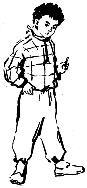 Стоя Женя иначе, чем сидя, видит мальчиков и весь класс. У Валерки Кузьмина на коротко стриженной голове, на самой макушке, препотешная ямка. Женя нетерпеливо переступает с ноги на ногу. У него начинают чесаться руки, — так ему хочется положить в эту ямку резинку. Упадёт или будет держаться?.. Но вся беда в том, что резинка в пенале, а пенал в портфеле, а портфель лежит в парте. Достать резинку — это целая длинная история.