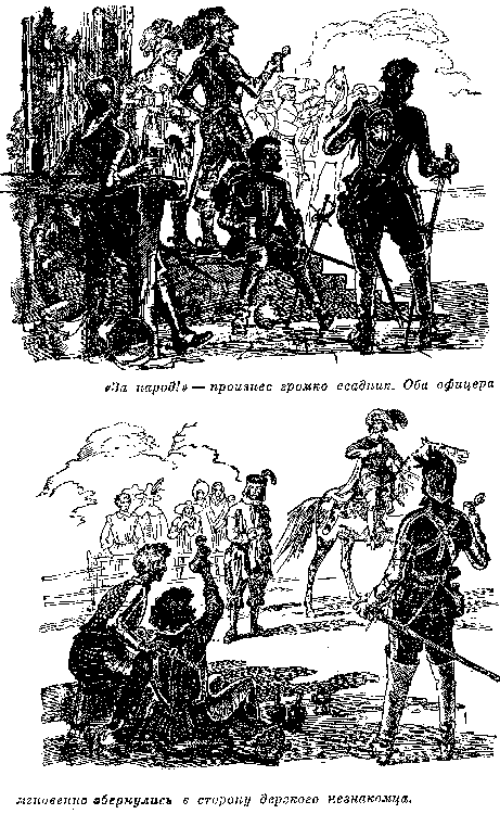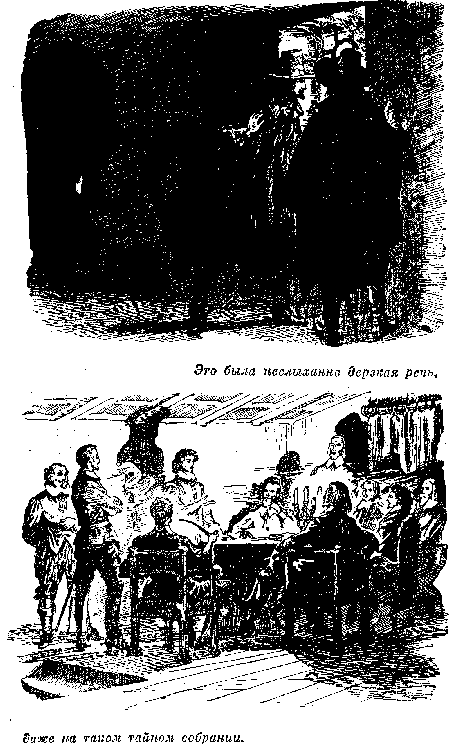 В тот день, когда английский фрегат покинул гавань Сан-Франциско, Рафаэль Рокас сидел в своей хижине и вел беседу с тремя людьми, по виду сильно отличавшимися от него. На нем была парусиновая куртка, толстые сапоги и шапка из тюленьей кожи. На его собеседниках — тонкого сукна плащи, штаны и бархатные куртки с позументами и блестящими пуговицами. Тем не менее, во время разговора этот полурыбак-полуконтрабандист держал себя с большим достоинством. Гостями были Кальдерон, Лара и дон Мануэль Диас, известный своими боевыми петухами. Они сняли плащи и уселись вокруг единственного в хижине столика. — Хотите ли вы разбогатеть, господа? — начал Лара. Ему ответили с хохотом: — Черт возьми, конечно, хотим! — А что, по-вашему, называется богатством? — полюбопытствовал Диас. — Тысяч шестьдесят долларов, — ответил креол. — Имей я столько, — сказал Рокас, — я бы тотчас распрощался с тюленьей ловлей. — А я перестал бы смотреть на петушиные бои как на средство к существованию, — сказал Диас. — Так, для забавы, пожалуй. Я сделался бы помещиком и скотоводом, не хуже приятеля Кальдерона, которому его стада приносят такой большой доход. Все опять засмеялись. Они знали, что у Кальдерона уже давным-давно нет ничего. — Каждому из вас, — сказал Лара, — я обещаю упомянутую сумму, если вы согласитесь принять участие в одном маленьком предприятии. — Я готов на все за шестьдесят тысяч долларов, — объявил Диас. Ловец тюленей просто кивает головой. Он знает все до мельчайших подробностей, так как является инициатором всего дела. — В чем же дело, дон Франциско? — спрашивает дон Диас. — Может быть, вы открыли золотую жилу? — Именно золотую жилу. Настоящий клад, причем золото уже в готовом виде и уложено так, что можно перевезти его, куда угодно. — Это приятно слышать, — отозвался дон Диас. — Еще бы! — поддержал Рокас, притворяясь удивленным. — Да, так приятно, — добавил Диас, — что возникают сомнения. — Тут нет ничего преувеличенного. К золоту надо только подойти, чтобы его взять. — Так вот оно, в чем дело, — недоверчиво сказал Диас. — А что вы думали? Не вообразили ли вы, что можно взять шестьдесят тысяч, и руки не протянув? — О! Я согласен протянуть обе: одну с ножом, другую с пистолетом. — Едва ли это будет нужно, если дело повести толково. Главное, согласны ли вы? — Согласен, — сказал Диас. — Я тоже не отказываюсь, — поддержал Кальдерон. — Отлично! — воскликнул Лара. — Готовы ли вы связать себя договором? — Согласны. — Тогда нужно произнести клятву. На случай измены последняя будет еще и клятвопреступлением. Все безмолвно выразили согласие. — Встаньте, — скомандовал глава заговора, — клятву следует произносить стоя. Все четверо поднялись. Лара вынул свой кинжал и бросил на стол. Все остальные сделали то же. Лара сложил кинжалы крестообразно и твердым, торжественным голосом произнес следующие слова, между тем как остальные повторяли их за ним: — Клянемся: не изменять друг другу в деле, которое мы сегодня соглашаемся исполнить общими силами, защищать друг друга, если понадобится, жертвуя собственной жизнью, хранить наши поступки в тайне, а того, кто выдаст, настигнуть, куда бы он ни бежал, и отомстить, убив его. Изменник да будет проклят навеки.Глава 33