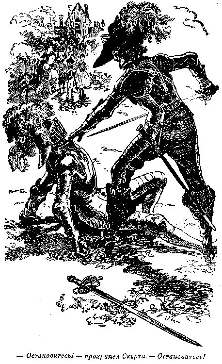 Вместо вооруженных врагов перед офицерами несколько изможденных человеческих скелетов с молящими лицами, до того ослабевших, что они почти не держатся на ногах. Прежде всего офицеры бросаются навстречу молодым девушкам. Слышны восклицания, поцелуи, несколько отрывистых, бессвязных слов, среди которых Крожер говорит Кармен, что ее отец жив и что он тут, с ними на шхуне. В нескольких шагах от них стоит Гарри Блью. Матрос не поклонился своему бывшему офицеру. Взор его бесстрастен. На взгляд Крожера, у него вид самого закоснелого преступника. Но он не хочет судить этого человека, не выслушав его. — Я требую от тебя отчета, Гарри! Пожалуйста, не виляй, говори правду! Если твоя вина действительно такова, как кажется мне, ты не заслуживаешь прощения. Он обнажает шпагу. Блью тоже вооружен пистолетом и ножом. Тем не менее он не выказывает ни малейшего желания защищаться. Со смущением он опускает голову на грудь. Это молчание Крожер принимает за сознание вины. — Изменник! — восклицает он. — Прежде, чем я проколю тебя шпагой, сознавайся! — В вашей власти убить меня, господин Крожер! Моя жизнь принадлежит вам, и я готов умереть в радостном сознании, что сделал все, что только возможно, чтобы доказать вам мою благодарность за то, что вы когда-то спасли мне жизнь. Он не успел еще закончить, как рука, державшая шпагу, опустилась под давлением нежной ручки, и тихий голос произнес: — О Эдуард! Вы ничего не знаете! И я, и Иньеса, мы обе обязаны жизнью этому славному человеку. — И даже больше, чем жизнью! — сказала Иньеса. Крожер вздрогнул и едва не выронил шпагу. Он чувствует себя, как человек, который едва не совершил убийство. Этот потрясающий эпизод сменяется другим, еще более ярким. Пока Кармен рассказывает о поведении Блью, ее прерывает крик, несущийся с берега. — Сюда, на помощь! Вместе с этим Крожер слышит свое имя, и, узнав голос боцмана, которому поручена была лодка, бросается на берег. За ним бегут Кадвалладер и золотоискатели. Только двое остаются стеречь разбойников. Скоро им становятся понятными крики боцмана. Громмет стоит в лодке с крюком в руках, потрясая им и крича что есть мочи. Четыре человека обступили его. При одном взгляде на них английские офицеры узнают двоих, Лару и Кальдерона. Крожер и Кадвалладер были уверены, что их враги на острове и собирались спросить, где они. Теперь нет надобности их разыскивать. Они вместе со своими союзниками на расстоянии пистолетного выстрела. Не может быть никакого сомнения в их намерении. Они хотят овладеть лодкой и уехать.Глава 68