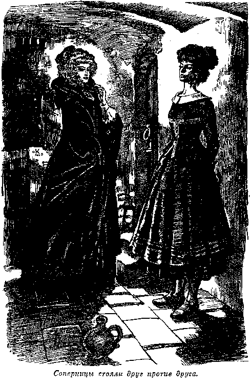 Находящиеся в гроте не спят, несмотря на мрак. Они так несчастны, что им не до сна. Они во власти самого глубокого отчаяния и оплакивают, как покойника, того, кто был им дороже всех. Сомневаться в том, что дон Грегорио погиб, не приходится. Еще в шлюпке из разговоров разбойников они узнали, что шхуна получила течь и должна пойти ко дну. Вероятно, она уже теперь затонула вместе с теми, кто был оставлен на ней. Они ничего не видели, но знают, что преступление совершено с целью грабежа. Но это еще не все! Впереди их ждет то, о чем они даже думать боятся. — Иньеса, — прошептала Кармен, — я не сомневаюсь, что мы в руках известных нам людей. Я уверена, что не ошибаюсь. Если это так, спаси нас, Господи! — Да, только Бог может нас спасти. Даже разбойники нас пощадили бы, а эти люди — никогда. Иньеса вздохнула. Опять возобновляется разговор. Несчастные пленницы советуются, нельзя ли рассчитывать на чью-либо помощь. Но нет! Даже английский матрос и тот им изменил. Он стал во главе заговора. — Помолимся Богу! — говорит Кармен. — Помолимся, надежда только на него одного. Они опускаются на колени на холодное, жесткое дно грота и с горячей мольбой обращаются к Богу. Они молят спасти жизнь тому, кто им дорог, и молят оградить их от опасности. Голоса их дрожат, когда они в заключение произносят наконец «аминь» и осеняют себя крестным знамением. Внезапно до их слуха доносится шум. Они невольно отрываются от молитвы. До них доносятся голоса, и одновременно парусина, ограждающая вход, отодвигается, и в пещеру входят два человека. — Простите за вторжение в столь позднее время, сеньориты, — говорит один из них. — Но мы вынуждены. Надеюсь, что вы не будете требовать соблюдения того строгого этикета, которым вы окружали себя, когда мы имели счастье быть у вас в последний раз. Не дожидаясь ответа, он продолжал: — Донья Кармен Монтихо, мы старые друзья, хотя, кажется, вы не узнали моего голоса. Шум моря так долго наполнял ваш слух, что я не удивляюсь. Быть может, зрение скорее напомнит вам о старом друге. Он вынул из-под полы фонарь и осветил пещеру. Кармен Монтихо увидела перед собой Лару, а рядом с ним Фаустино Кальдерона. Это они, отвергнутые женихи, но уже не в матросской одежде, а в той самой, которая была на них в день их последней встречи. Они сознают, что девушки в их власти, и торжествуют. — Как видите, мы опять встретились. Наше появление вас удивило, хотя и не очень. Ему не ответили и теперь. — Нежелание отвечать надо счесть за неудовольствие. И лица у вас испуганные. Но чего вы боитесь? — Чего вам бояться? — поддерживает его Кальдерон. — Мы не желаем вам зла, — пробормотал Лара, — напротив, только добра. Мы имеем предложить вам нечто очень приятное. — Дон Франциско Лара, — с упреком воскликнула Кармен, — и вы, дон Фаустино Кальдерон, как решились вы на такое злодейство? Чем мы вызвали его? — Перестаньте, прекрасная донья Кармен. Слово «злодейство» слишком грубо. Мы не сделали решительно ничего такого, что бы заслуживало подобного наименования. — Как? Так это еще не злодейство? О, отец, мой бедный отец! — Не оплакивайте его. Он в полной безопасности. — В безопасности? Его убили! Он утонул! — Уверяю вас, это неправда, — сказал Лара, не останавливаясь перед ложью. — Дон Грегорио плавает себе по океану и, может быть, проплавает очень долго. Ну, да все это — прошлое, а лучшее впереди. Вы сп