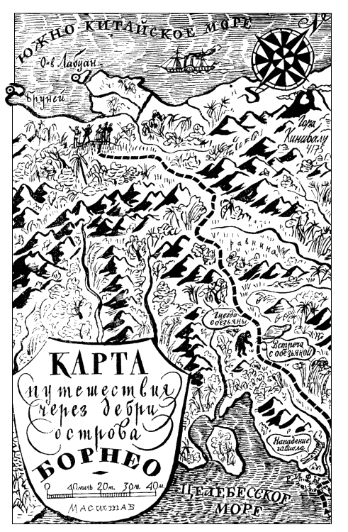 Скоро показались высокие горы — берега Огненной Земли, как объяснил капитан. Путешественники увидели затем высокий черный утес, который был, как им рассказывали, свидетелем гибели многих кораблей… Погода между тем испортилась: подули противные ветры, захлестал мокрый снег; на каждом шагу «Мэпо» грозили утесы и скалы. Негостеприимно встретил Тихий океан наших друзей! Но их ожидала гораздо большая опасность: на корабле впыхнул бунт. Первым заметил неладное среди экипажа Том. — Папа, — сказал он отцу, — один из новых матросов, Вилль Гарди, кажется, замышляет недоброе. Я сам слышал, как он подговаривал товарищей к бунту! Мистер Мертон, зная, к каким печальным последствиям может привести мятеж на корабле, обеспокоился. Но Люис поспешил ободрить его. — Как ни дерзок Билл, — заметил он, — я не думаю, что он способен на серьезное преступление. Однако в душе Люис тоже не был спокоен и обратился к капитану. Тот, после посещения могил жены и дочери, почти все время сидел в каюте и потому не замечал брожения в экипаже. Однако разговор с Люисом вывел его из состояния апатии. Он позвал помощника, честного, превосходного моряка, но сурового служаку, за что его не терпели матросы, и пошел с ним на палубу. Тем временем Люис вернулся к своим друзьям и стал раздавать оружие, а Нанни стала наскоро собирать необходимые вещи. Вдруг на палубе послышался шум голосов, топот ног, крики и выстрелы. Скоро дверь настежь отворилась, и в каюту вошло двое матросов. Они внесли находившегося без чувств Вилли Гарди, у которого была прострелена рука. — А ну, доктор, поправьте-ка ему руку! — грубо сказали они Люису. — Злодеи, что вы там наделали?! — воскликнул с негодованием мистер Мертон. Вместо ответа один из бунтовщиков направил на него пистолет. — Стойте, — резко поднялся доктор, — мы все вооружены, и если вы тронете хоть одного из нас, то вас и вашего предводителя может постигнуть смерть! Успокойтесь, и я спасу Вилли Гарди! В это время раненый очнулся. — Избавьте меня от боли, — простонал он, — и клянусь, что никого из вас здесь не тронут! Доктор принялся за перевязку, затем приготовил успокоительную микстуру с опиумом, но перед тем, как дать ее больному, сначала объяснил ему ее свойства. Выслушав Люиса, больной попросил позвать своего помощника, Джека Аллена, и, когда тот явился, велел ему отпустить пассажиров на шлюпке в море, дав им бочку воды, мешок сухарей и мешок риса, а из домашних вещей — все, что они захотят с собой взять. Под хохот и ругательства несчастные пассажиры, наскоро забрав оружие и домашние вещи, поспешили в шлюпку, ежеминутно опасаясь, как бы бунтовщики не передумали и не набросились на них. Все обошлось благополучно. Но, к удивлению наших друзей, к бунтовщикам пристал щеголеватый камердинер Чарльза, с насмешкой заявив своему господину, что и он хочет пожить свободно. Разгневанный Чарльз едва не бросился на него с кулаками; Мертоны удержали его, не то всем им пришлось бы туго. Оказавшись в шлюпке, наши путешественники схватились за весла и поспешили удалиться от корабля. У доктора оказался карманный компас, и он посоветовал держать курс прямо на восток, так как, по его мнению, они не могли быть очень далеко от чилийских берегов. Так и сделали… Наступила ночь. Утомленные долгой греблей, изгнанники подняли парус; ветер, сильно дувший с юга, погнал их к северу, 
