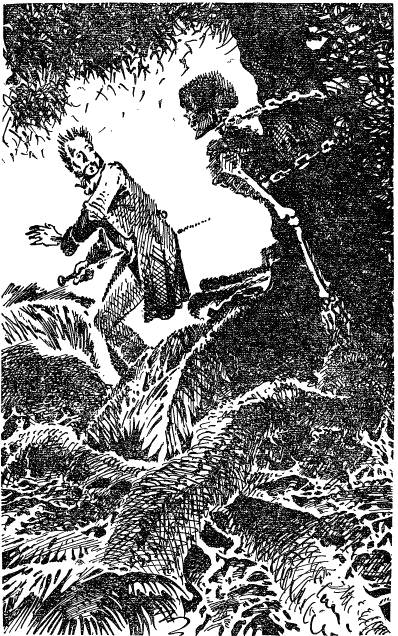 — Пресвятая Дева, смилуйся над нами! Этот возглас мольбы вырывается из уст дона Грегорио Монтихо в рубке «Кондора». Уже несколько дней прошло с тех пор, как бежал экипаж, а шхуна все мчится на всех парусах к юго-западу. Обреченные на гибель жертвы в том же положении: негр на лавке в камбузе, капитан с пассажиром друг против друга за столом в рубке, крепко привязанные к креслам. Они очень изменились внешне. Дон Грегорио и Лантанас уже пять суток сидят в одном положении, без воды и без пищи. Они напоминают живые скелеты с глубоко провалившимися глазами. Если развязать веревки, удерживающие их, они тотчас упадут на пол. Раньше они перебрасывались кое-какими словами о своем отчаянном положении, теперь молчат. Они еще верят в спасение, но с каждым часом безнадежность овладевает ими все сильнее и сильнее… Иногда до их слуха доносились крики повара, который, как они догадывались, тоже был привязан. Они пробовали вступать с ним в разговор и кричали ему. Но вскоре убедились, что это напрасно. Он если и слышал их, то не мог ответить. Несчастные уже не имеют сил кричать. Их давно покинула надежда развязать веревки, и они перестали говорить друг с другом. Лантанас был в полной апатии и сидел, опустив голову на грудь. Дон Грегорио держал, или, по крайней мере, старался держать голову прямо. В открытые окна рубки видно море. Он не спускает с него глаз, все еще надеясь увидеть там что-то. Но видны только белые, пенистые гребни, да время от времени на синей поверхности плещутся, играя, морские свинки. Только один раз он заметил предмет, который заставил его затрепетать. Он вскрикнул и изо всех сил сделал усилие, чтобы вырваться из веревок. Пересекая путь «Кондору», прошло под всеми парусами судно. С него донесся оклик, и они изо всех сил начали кричать. Но их не услышали. После этого они кричали еще несколько часов, пока совсем не потеряли голоса, а затем впали в глубокое, безнадежное уныние. При каждом их крике к ним бросались орангутанги, наваливаясь всей своей тяжестью на запертую дверь. Чилиец впал в отчаяние. Дон Грегорио оставил всякую надежду на помощь, но еще продолжал уповать на Провидение. Он горячо молился: — Матерь Божия! Пресвятая Дева! Смилуйся над нами! Вдруг Лантанас поднял голову. — Капитан? Какой я капитан? Я — жалкая тварь, умирающая от голода и жажды! Вы воображаете, что это фрукты и пирожные? Нет! Это разрисованные камни. А вот эти бутылки и графины? Это мираж. Это — нечистые духи, бесы низшего разряда. А ведь как они прыгают! Давайте прыгать и мы! Красавицы мои, обезьяны, идите сюда! Мы будем плясать, из палубы сделаем большую залу и будем прыгать выше головы! Ха, ха, ха! — Боже мой! — застонал дон Грегорио. — Он сошел с ума!..Глава 59