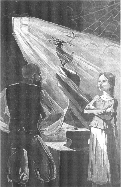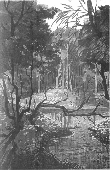 Время осеннее было. Как раз около Змеиного праздника свадьба пришлась. К слову, кто-то и помянул про это — вот-де скоро змеи все в одно место соберутся. Данилушко эти слова на приметку взял, вспомнил опять разговоры о малахитовом цветке. Так его и потянуло: «Не сходить ли последний раз к Змеиной горке? Не узнаю ли там чего?» — и про камень припомнил: «Ведь как положенный был! И голос на руднике-то... про Змеиную же горку говорил». Вот и пошёл Данилушко. Земля тогда уже подмерзать стала, и снежок припорашивал. Подошёл Данилушко ко крутику[31], где камень брал, глядит, а на том месте выбоина большая, будто камень ломали. Данилушко о том не подумал, кто это камень ломал, зашёл в выбоину. «Посижу, — думает, — отдохну за ветром. Потеплее тут». Глядит — у одной стены камень-серовик, вроде стула. Данилушко тут и сел, задумался, в землю глядит, и всё цветок тот каменный из головы нейдёт. «Вот бы поглядеть!» Только вдруг тепло стало, ровно лето воротилось. Данилушко поднял голову, а напротив, у другой-то стены, сидит Медной горы Хозяйка. По красоте-то да по платью малахитову Данилушко сразу её признал. Только и то думает: «Может, мне это кажется, а на деле никого нет». Сидит — молчит, глядит на то место, где Хозяйка, и будто ничего не видит. Она тоже молчит, вроде как призадумалась. Потом и спрашивает: — Ну, что, Данило-мастер, не вышла твоя дурман-чаша? — Не вышла, — отвечает. — А ты не вешай голову-то! Другое попытай. Камень тебе будет по твоим мыслям. — Нет, — отвечает, — не могу больше. Измаялся весь, не выходит. Покажи каменный цветок. — Показать-то, — говорит, — просто, да потом жалеть будешь. — Не отпустишь из горы? — Зачем не отпущу! Дорога открыта, да только ко мне же ворочаются. — Покажи, сделай милость! Она ещё его уговаривала: — Может, ещё попытаешь сам добиться! — Про Прокопьича тоже помянула: — Он-де тебя пожалел, теперь твой черёд его пожалеть. — Про невесту напомнила: — Души в тебе девка не чает, а ты на сторону глядишь. — Знаю я, — кричит Данилушко, — а только без цветка мне жизни нет. Покажи! — Когда так, — говорит, — пойдём, Данило-мастер, в мой сад. Сказала и поднялась. Тут и зашумело что-то, как осыпь земляная. Глядит Данилушко, а стен никаких нет. Деревья стоят высоченные, только не такие, как в наших лесах, а каменные. Которые мраморные, которые из змеевика-камня... Ну, всякие... Только живые, с сучьями, с листочками. От ветру-то покачиваются и голк дают, как галечками кто подбрасывает. Понизу трава, тоже каменная. Лазоревая, красная... разная... Солнышка не видно, а светло, как перед закатом. Промеж деревьев-то змейки золотенькие трепыхаются, как пляшут. От них и свет идёт. И вот подвела та девица Данилушку к большой полянке. Земля тут, как простая глина, а по ней кусты чёрные, как бархат. На этих кустах большие зелёные колокольцы малахитовы и в каждом сурьмяная[32] звездочка. Огневые пчёлки над теми цветками сверкают, а звёздочки тонёхонько позванивают, ровно поют. — Ну, Данило-мастер, поглядел? — спрашивает Хозяйка. — Не найдёшь, — отвечает Данилушко, — камня, чтобы так-то сделать. — Кабы ты сам придумал, дала бы тебе такой камень, а теперь не могу, — сказала и рукой махнула. Опять зашумело, и Данилушко на том же камне, в ямине-то этой оказался. Ветер так и свистит. Ну, известно, осень. Пришёл Данилушко домой... ...Прокопьич давно спал. Данилушко потихоньку зажёг огонь, выво