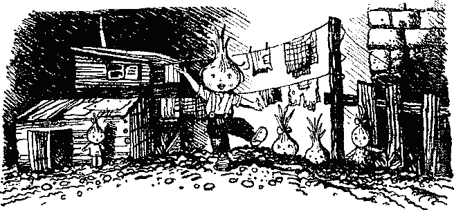 Чиполлоне, его жена и сыновья жили в деревянной лачуге чуть побольше ящичка для огородной рассады. Если богачам случалось попадать в эти места, они недовольно морщили носы, ворчали: «Фу, как несёт луком!» — и приказывали кучеру ехать быстрее.