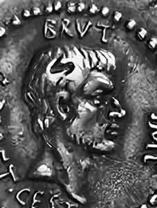 Денарий Марка Брута. Изображенные на монете кинжалы и фригийский колпак, надевавшийся на раба, которому даровали свободу, символизируют освобождение государства после гибели тирана, каковым Брут считал Юлия Цезаря