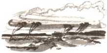 Будто невзначай, посыпался снег с высокой пихты. Это ветер пробрался в чащу. По тому, как он подхватывал снежную пудру и закручивал вихрем, было ясно: начиналась метель. Я заторопился из леса. С деревьев повалились пласты снега. Ели взмахнули зелёными лапами, как руками, и, чудилось, заголосили: «Ах, батюшки, как зимовать будем!..» Мне оставалось пройти небольшое поле. Но когда я вышел на опушку, то невольно остановился. Ветер с воем вырывался на простор. Подхватывая семена с высоких лип, он нёс их над полем.