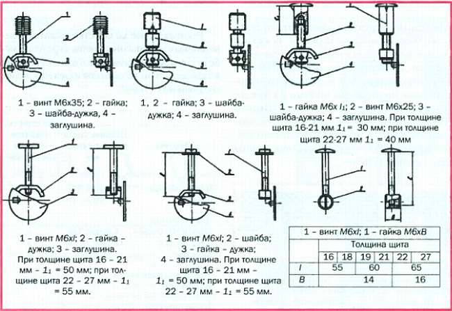 Рис. 6. Виды стяжек для соединения щитовых элементов мебели