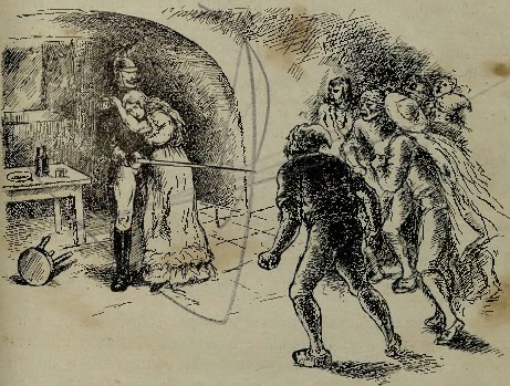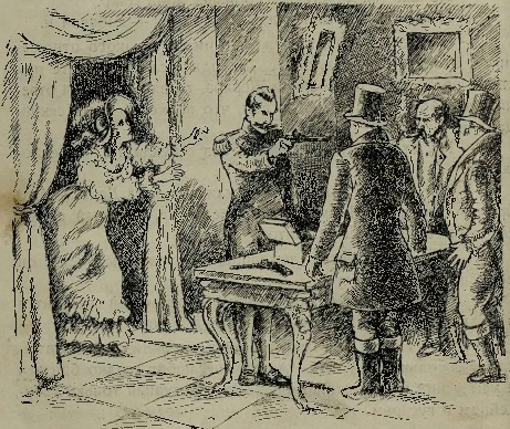 — Подать мне мою саблю! — воскликнул барон и с этими словами он вскочил с кресла и бросился вон из комнаты, крича: