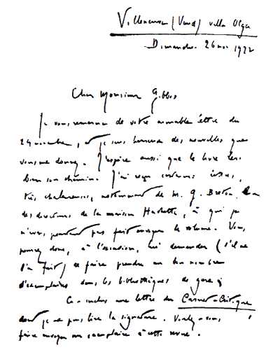 Начало и конец неопубликованного письма Роллана по поводу издания «Очарованной души». (Подлинник — в коллекции проф. Ю. Кучинского, ГДР.)