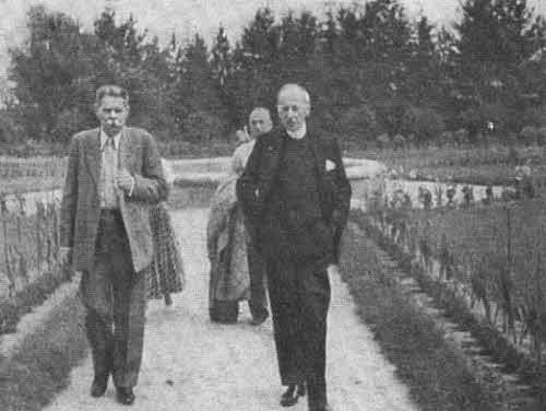 23 июня 1935 года Ромен Роллан с Марией Павловной приехал в СССР и пробыл почти месяц, по 21 июля. Иностранные писатели и журналисты, желавшие познакомиться с Советским Союзом, обычно включали в план своего путешествия, помимо Москвы, Ленинград, иногда Киев, иногда Тбилиси и курорты Закавказья, а иногда добирались и до Средней Азии; они осматривали крупные стройки, заводы, электростанции, образцовые колхозы и совхозы, школы, университеты. Роллану вся эта программа было недоступна. Ему было необходимо соблюдать режим, придерживаться строгой диеты, находиться над наблюдением врачей. Первые несколько дней он провел в Москве, а потом гостил у Горького в загородном доме в Горках, почти не выезжая оттуда. Собираясь в дорогу, Роллан отдавал себе отчет, что его знакомство с Советской страной останется ограниченным и неполным. Он все же надеялся увидеть и понять многое, быть может, даже больше, чем видят и понимают обычно иностранные путешественники. В Москве у него было немало друзей, знакомых, корреспондентов. Некоторые советские деятели культуры бывали у него в Вильневе (например, К. Федин или известный дипломат и писатель А. Аросев), некоторые вели с ним содержательную переписку (как, например, художник Е. Кибрик, иллюстрировавший «Кола Брюньона»), Разумеется, Роллан многого ожидал от встречи с Горьким, с которым был в таком близком заочном общении в течение почти двадцати лет. Словом, в СССР было с кем поговорить: обилие личных контактов могло возместить неполноту внешних впечатлений. Немаловажно и то, что Роллана сопровождала жена, для которой Россия была родной страной и у которой остался здесь свой круг родственников и знакомых. В Москве его ждал Сергей Кудашев, названый сын, милый, умный юноша, — с ним у отчима успели установиться добрые, доверительные отношения. За год до поездки в СССР у Роллана возникла необходимость вмешаться в судьбу Сергея в связи с его поступлением в университет. Он написал 26 апреля 1934 года письмо во Всесоюзное общество культурной связи с заграницей, на имя М. Аплетина: «Мой пасынок (сын моей жены г-жи Кудашевой, которая теперь — г-жа Роллан), Сергей Кудашев, 17 лет, этой весной заканчивает подготовку в университет. Ему надо представить свои «документы» в Московский университет, — я хотел бы, чтобы он специализировался там по математике (он очень способен к точным наукам и желает посвятить себя им). Он, в частности, должен предъявить документы, удостоверяющие его «социальное происхождение». К сожалению, со стороны отца дело обстоит не совсем просто. Его отец был князем, но он умер в возрасте 23 лет, когда ребенку было всего три года. Что касается его матери, то она, можно сказать, «пролетарского происхождения»: она работала с 14 лет до замужества и два года спустя снова стала работать. Но, так как она живет теперь в Вильневе со мной, я просил бы составить документ, удостоверяющий ее «трудовой стаж». Прилагаю список ее должностей, начиная с 1921 года. Думаю, что вам нетрудно будет его проверить, а в крайнем случае положиться на нас. Помимо этого, так как Сергей Кудашев теперь мой пасынок, я думаю, что можно принять во внимание и мое ручательство за него. Прошу упомянуть это в тексте документа, удостоверяющего «трудовой стаж» его матери»*. С подобным же письмом Роллан обратился к наркому просвещения Бубнову. Сергей Кудашев был пр