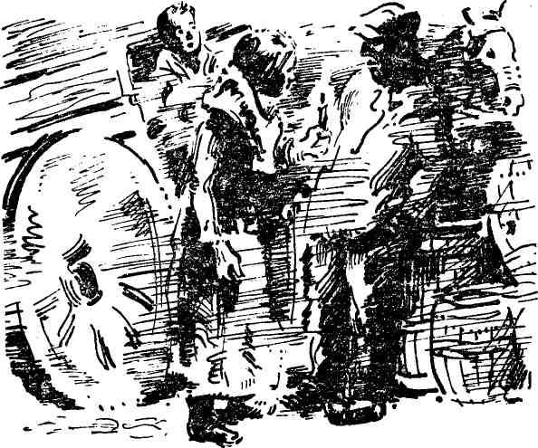 Всю дорогу ехали молча. И только когда показались крыши станционного поселка, Харис спохватился. — Послушай, Каспар, мы что же, так и расстанемся с Рейнисом? Сбросим его на станции, а сами домой, да? Притормози-ка драндулет, магазин рядом! Старенький грузовичок с большой зеленой будкой поверх кузова — разъездная ремонтная мастерская — неуверенно прошлепал по лужам и остановился напротив двухэтажной каменной постройки. Харис вылез первым. За ним Каспар, — тот, что сидел за рулем. Сзади приоткрылась дверца будки, и высунул голову Рейнис. — В чем дело? — спросил он. — В магазин решили наведаться, — пояснил Харис. — В столовой ведь не дадут… А нам поезда часа полтора дожидаться. Через весь магазин, одним концом уткнувшись в прилавок, петляла большущая очередь. За прилавком суетилась молоденькая продавщица, в белом халате. — Придется постоять, — упавшим голосом сказал Каспар. — Зачем? — удивился Харис. — Погоди, я мигом. И, ловко прошмыгнув сквозь толпу, оказался у прилавка. — Девушка, душенька, дай поллитровочку, всего-навсего одну поллитровочку! Без сдачи! Харис прямо-таки лег на прилавок, протягивая деньги продавщице, но та отрезала: — В очередь встань! Однако голос у нее был добрый. Сердиться на этого симпатичного, веселого парня было просто невозможно. Она бы тут же без звука ему отпустила, — да что скажут покупатели? Между тем очередь, приготовившись постоять за свои права, сжалась плотно, как гармошка. — Куда прешь, да куда ж ты прешь! — вскрикнула какая-то тетка. — Просто стыдно за молодежь. Подумайте, водка им понадобилась! Это в воскресенье-то! Лучше бы в церковь сходил помолился. А другая, затянув потуже узелок платка на подбородке, запричитала во всеуслышание: — Один такой намедни в сад к нам забрался. Прямо через забор сиганул, проклятый. И всего-то пяток антоновок на дереве осталось, так и те сунул за пазуху. А я возьми и попадись ему навстречу: «Молодой человек, говорю, зачем же так? Попросил бы — сама дала, мне не жалко». А он: «Молчи, старуха!» А сам из себя видный, разодетый, при часах —может, еще и комсомолец. Уж мои дети — на что хулиганы, — но таких слов от них не услышишь. — Хи-хи-хи! — Хо-хо-хо! По магазину прокатился дружный смех. Один гоготал, другой покрякивал сдавленным баском, третий хихикал, беззвучно разевая рот. — Это леспромхозные. Совсем одичали в лесу. — Что поделаешь, где-то надо хлеб зарабатывать. — А по годам-то — женихи! — Женихи… Скажешь тоже! Да у них на подбородке, поди, пух как следует не вырос. Уж о другом молчу. — Хи-хи-хи! Хо-хо-хо! — Спасибо, девушка! — Ты глянь, добился своего. С подходом парень! — Пускай ребята погуляют. Не маленькие. Видать, и в армии отслужили. — Сами были молодые, и не такое вытворяли. — Хо-хо-хо! — Славные ребята, всю неделю вкалывали, в воскресный день не грех и выпить. — Но уж теперь никого не пускайте без очереди, чего там застряли, совсем вперед не движемся! Когда вышли из магазина, Каспар снова сел за руль, а Харис пошел заводить машину. Мотор всхрапнул, потом захрюкал, точно поросенок, когда в благодушном настроении трется о жердь забора. Наконец грузовик тронулся с места. — Некрасиво получилось, — сказал Каспар. — Не стоило лезть без очереди. — Что ж было делать? Уйти ни с чем? Ведь ждать нам некогда. — А те что — хуже нас с тобой? — Нашел о чем беспокоиться! Ну давай вернемся, постоим. — Лад