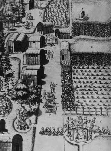 План идеального поселения коренных американцев в Вирджинии, нарисованный Джоном Уайтом в 1587 г.