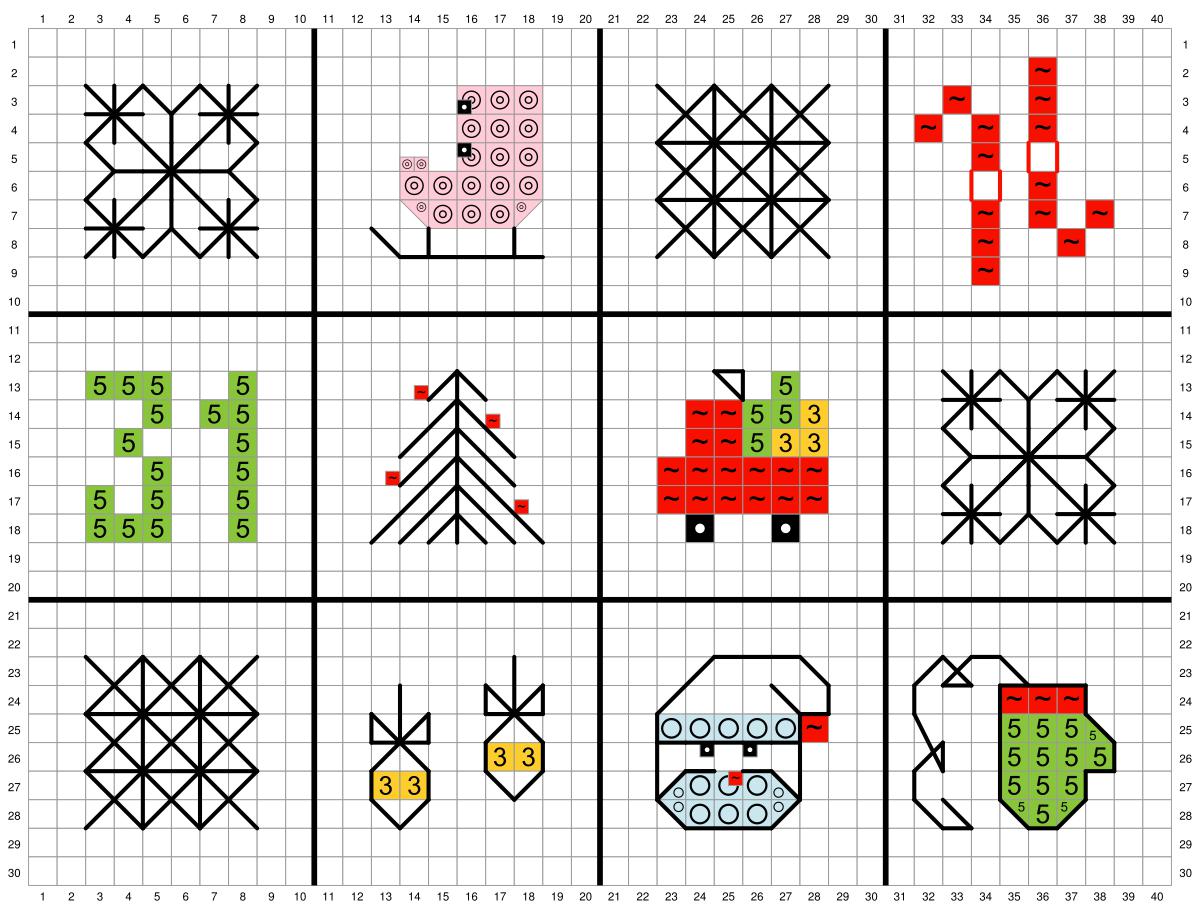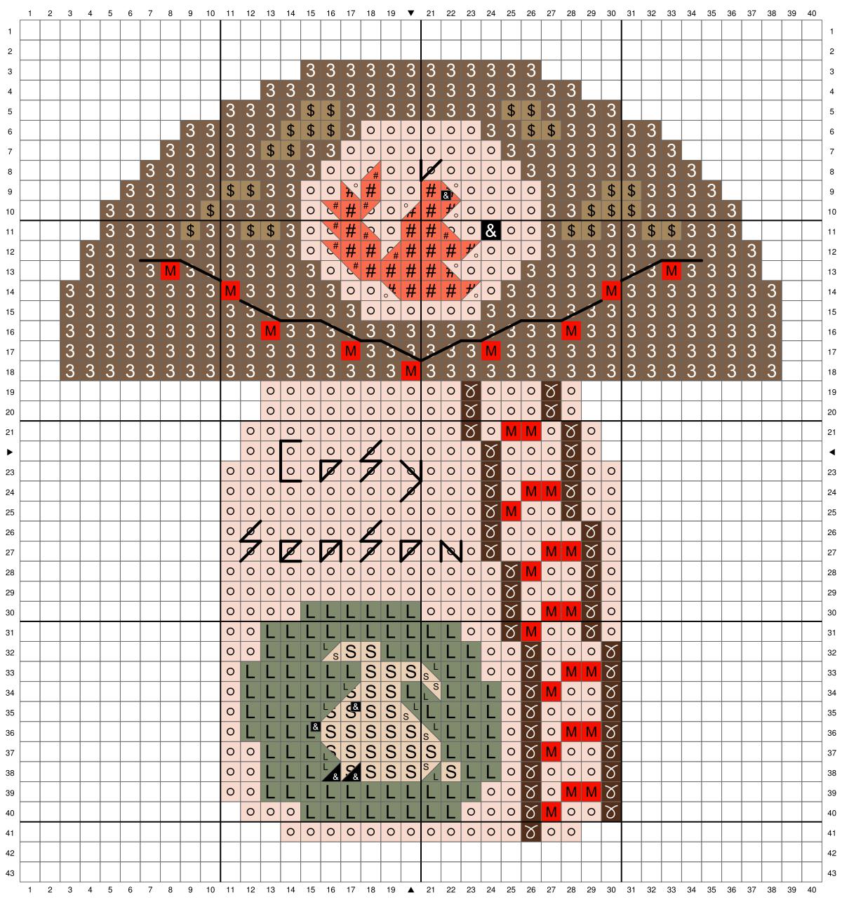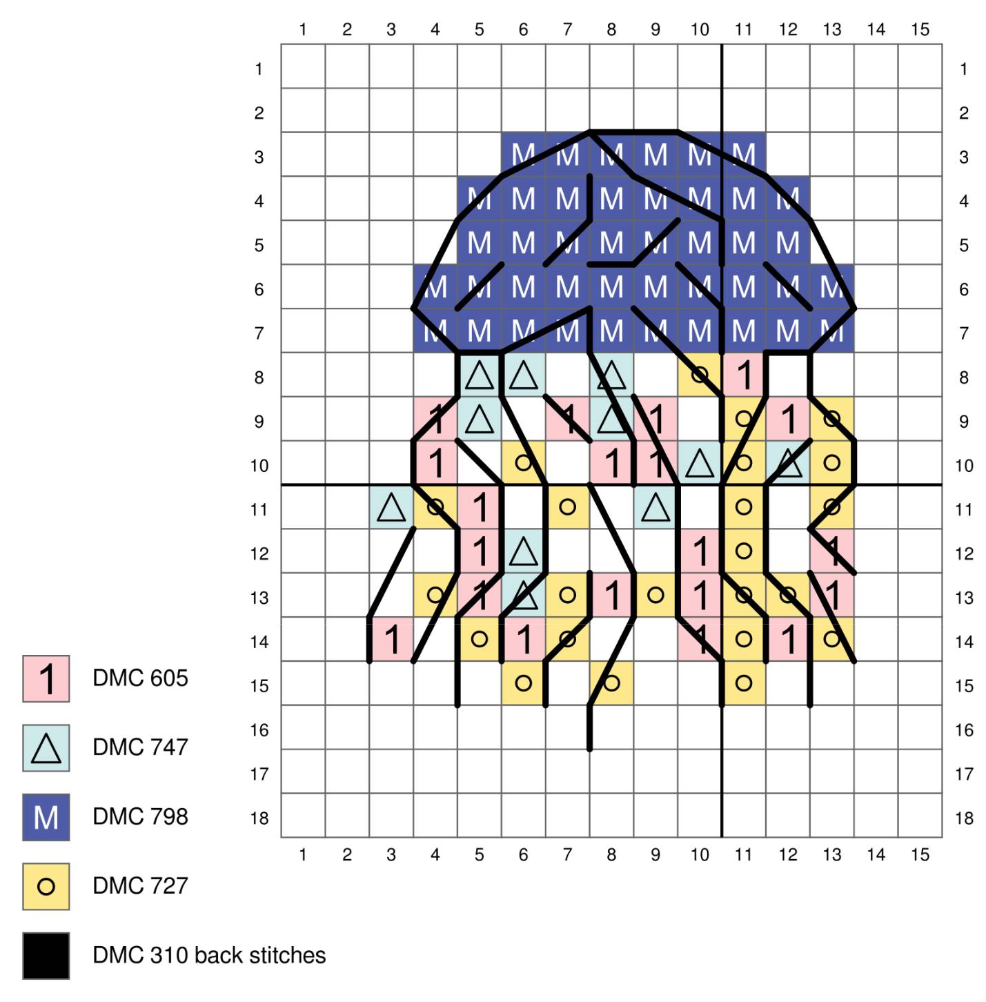 Back stitches — шов назад иголку. Темно-серые линии на схеме — DMC 310.