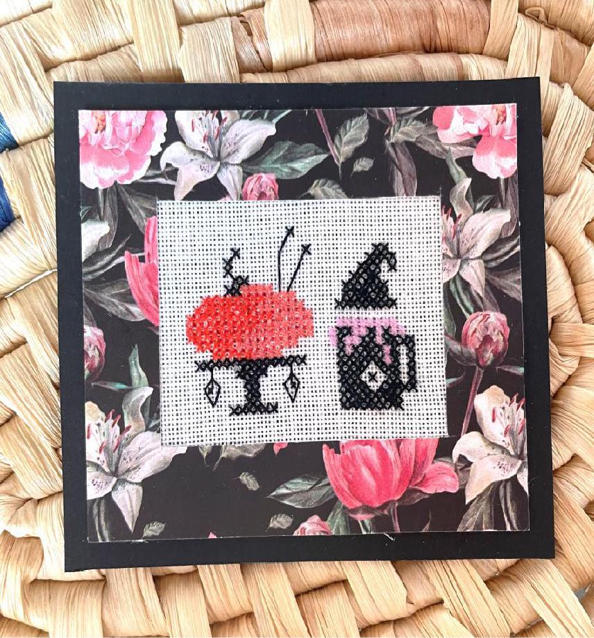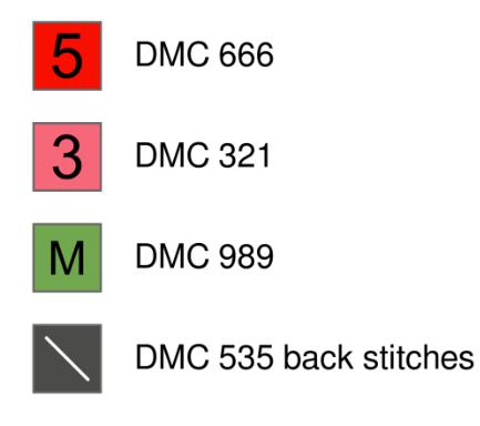 Back stitches — шов назад иголку. Черные линии на схеме — DMC 310; красные линии на схеме — DMC 321.