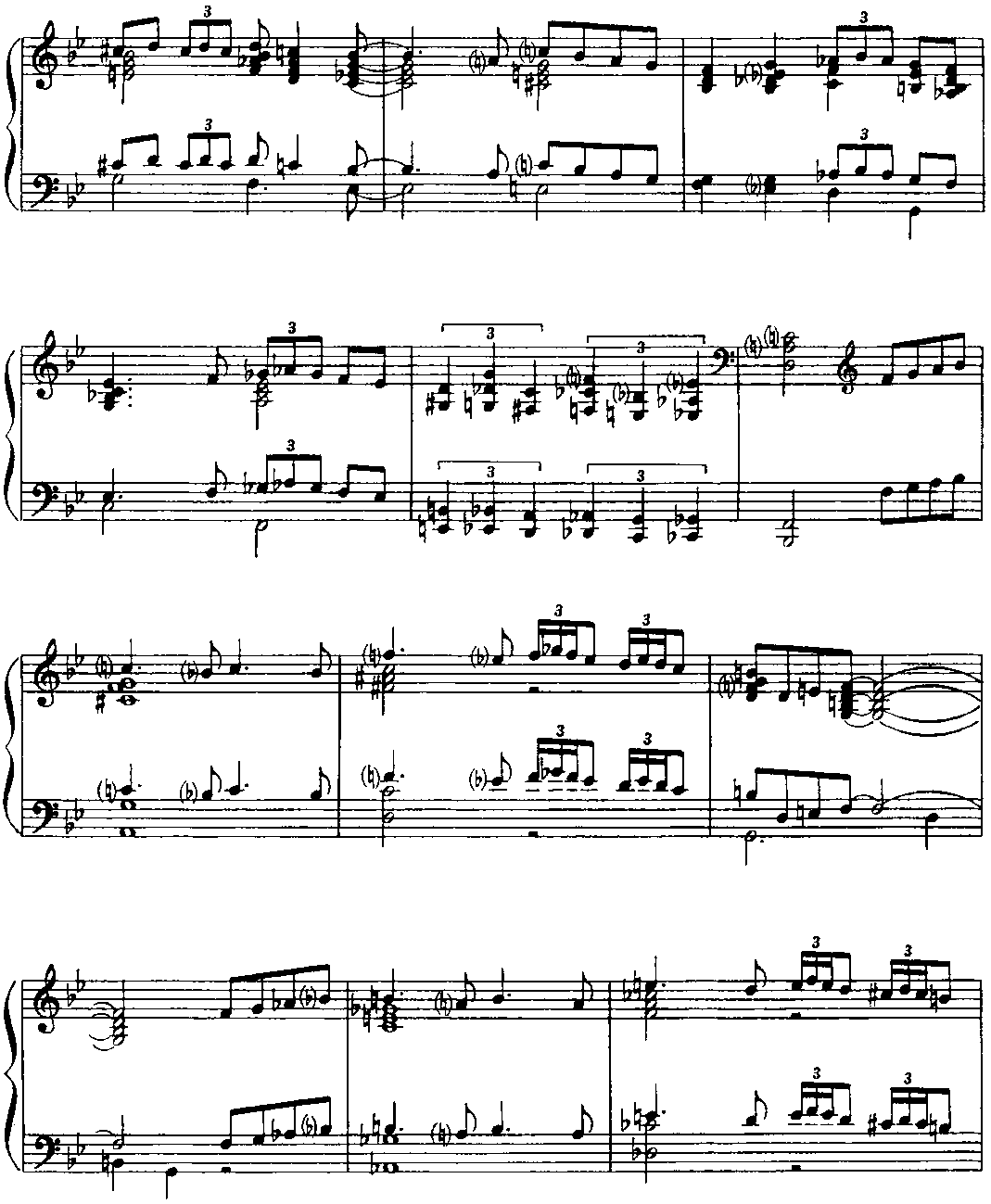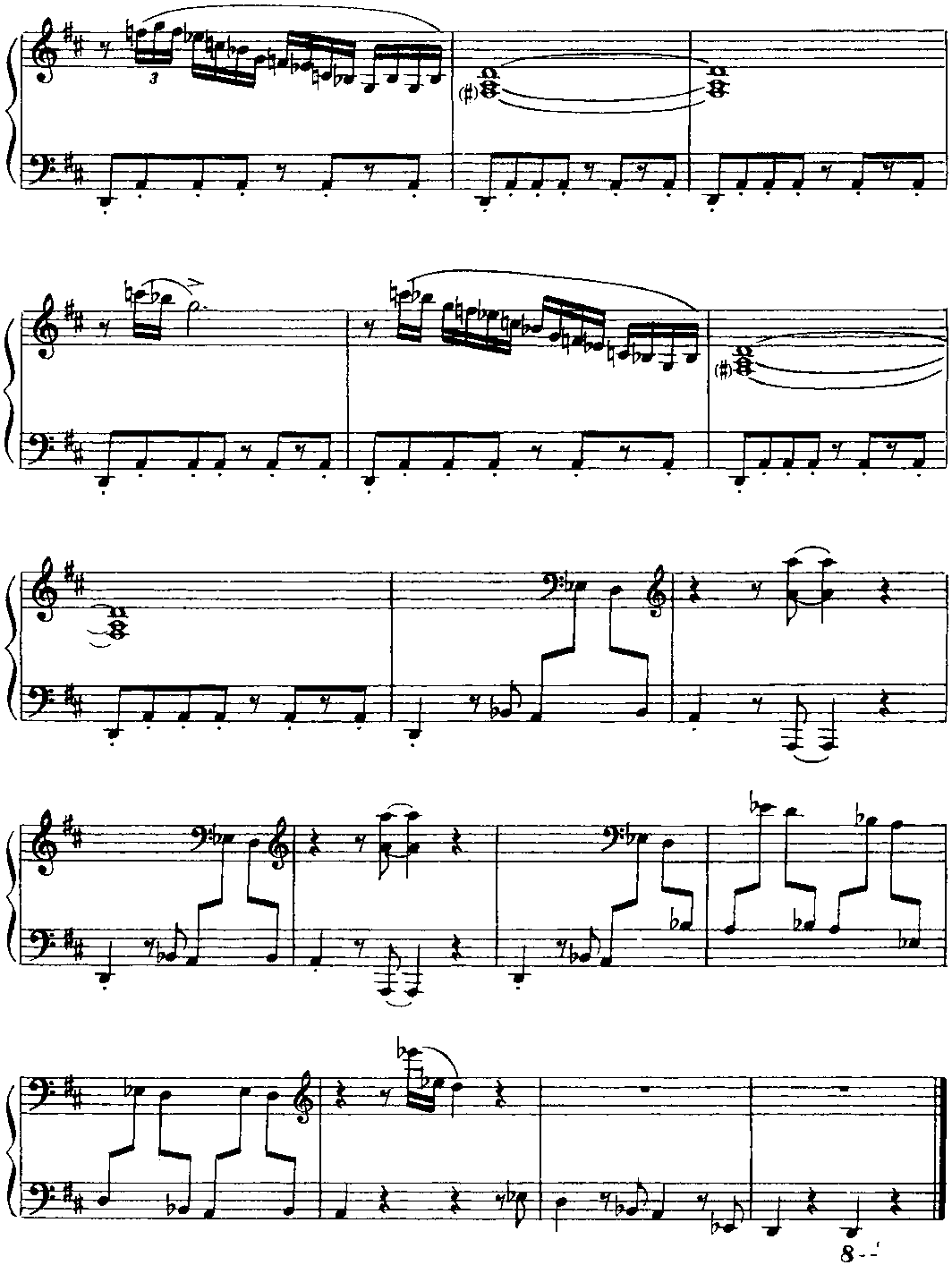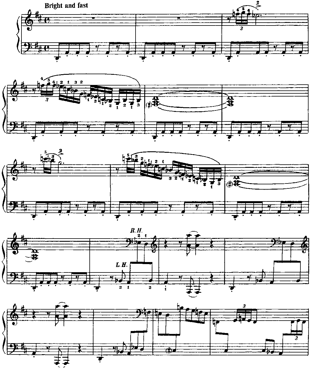Для того чтобы должным образом ощущалась метрическая пульсация, имеет смысл представить себе, что в исполнении участвует ритм-группа. Полифоничность изложения требует особого внимания к мелодической линии каждого голоса. В "бридже” некоторые аккорды выпущены; это продиктовано, во-первых, соображениями удобоисполнимости и, во-вторых, стремлением обеспечить большую ясность артикуляции. (Примеч. автора.) Структура пьесы — интродукция (8 т.) + ААВА (8+8+8+8 т.) + интермедия на тоническом органном пункте (12 т.) + А (8 т.) + кода (9 т.). "Бридж” (восьмитакт В формы ААВА) контрастирует полифоническому окружению не только в интонационногармоническом аспекте, но и с точки зрения фактуры: он изложен так называемыми блок-аккордами (правая рука дублирует мелодию левой руки октавой выше и, кроме того, заполняет образующиеся октавные промежутки аккордовыми тонами; однако в ряде случаев такие октавно-аккордовые дублировки отсутствуют — это обстоятельство отражено в приведенном выше авторском пояснении). И еще — небольшой лингвистический комментарий. Английское идиоматическое выражение "Get off my back” означает "Отвяжи(те)сь от меня" (буквально — ”от моей спины"), "Оставь(те) меня в покое", "Отстань(те) от меня", "Не приставай(тс) ко мне”, "Не трогай(те) меня" и т. п. Фамилия великого немецкого полифониста звучит (привожу фонетическую транскрипцию) [bah], в англо-американском произношении — [ba:h] или же [ba:k], то есть очень похоже на слово back [bask] (разница лишь в окраске гласного звука). Таким образом, в названии этой пьесы (напоминающей бахов-ские двухголосные инвенции и относящейся к стилю baroque jazz — "джаз-барокко") Дж. Ширинг пользуется игрой слов; он как бы говорит: "Да не трогайте же вы моего Баха (как я его понимаю), оставьте его в покое — и меня заодно". Поначалу я хотел было остановиться на таком варианте перевода: "Отстаньте от меня и от моего Баха" (может быть, так и надо было сделать). Важно, что знаменитый слепой пианист и композитор (англичанин, подолгу живший в США), по всей вероятности, хотел подчеркнуть свое право на творческое преломление традиций И. С. Баха в русле джазовой стилистики. (Примеч. ред.-сост.)