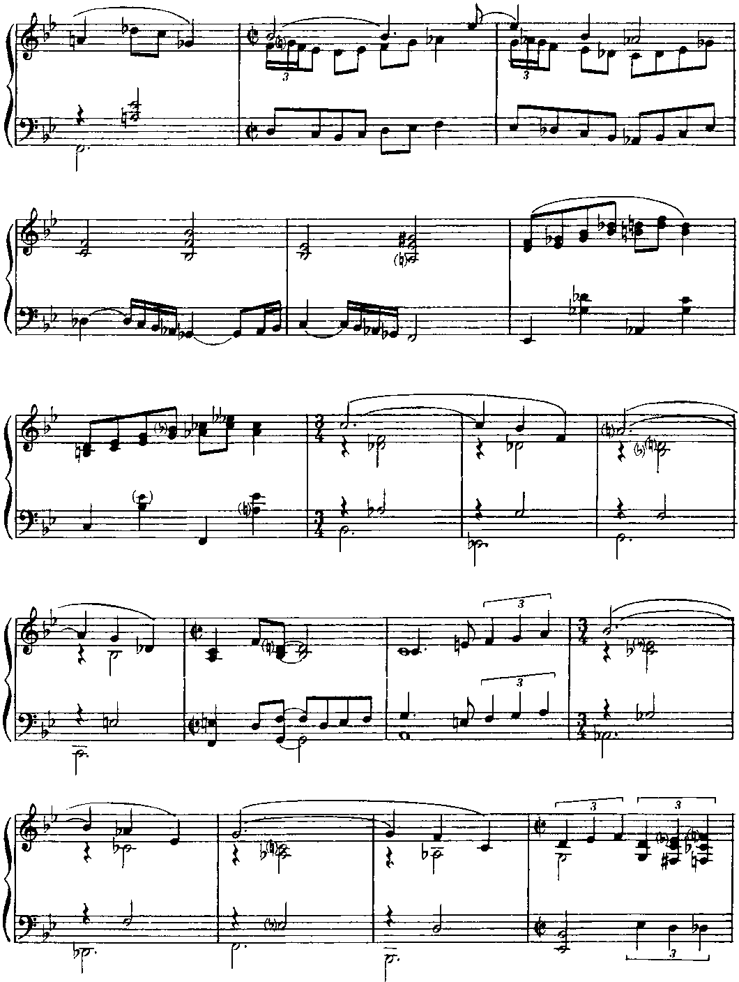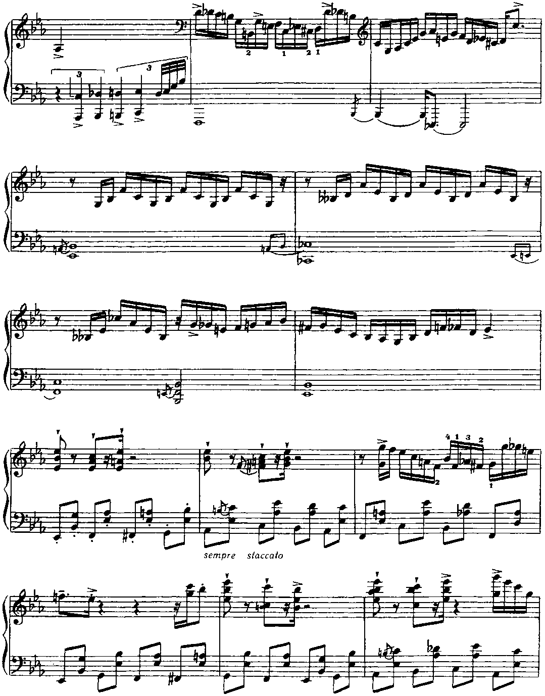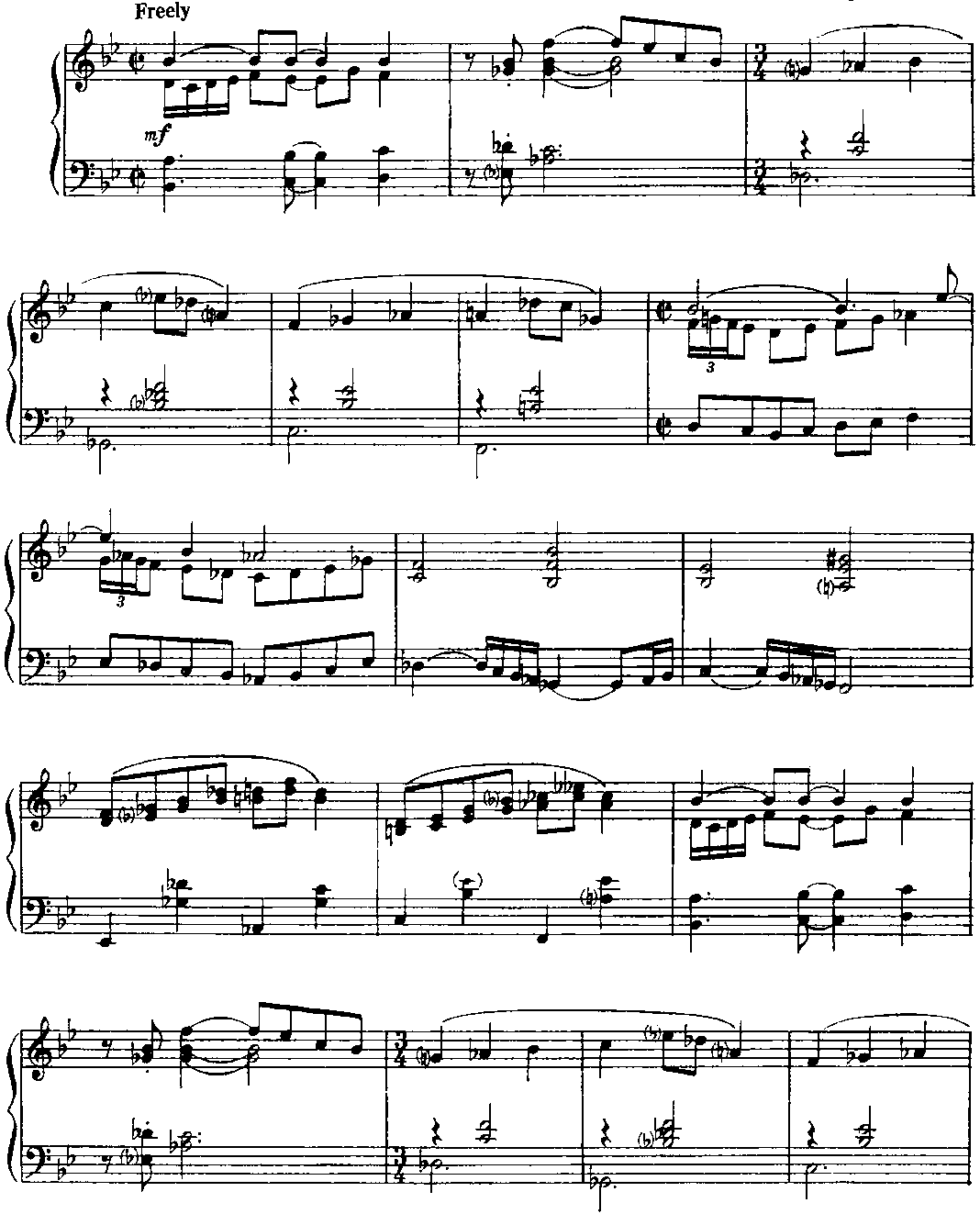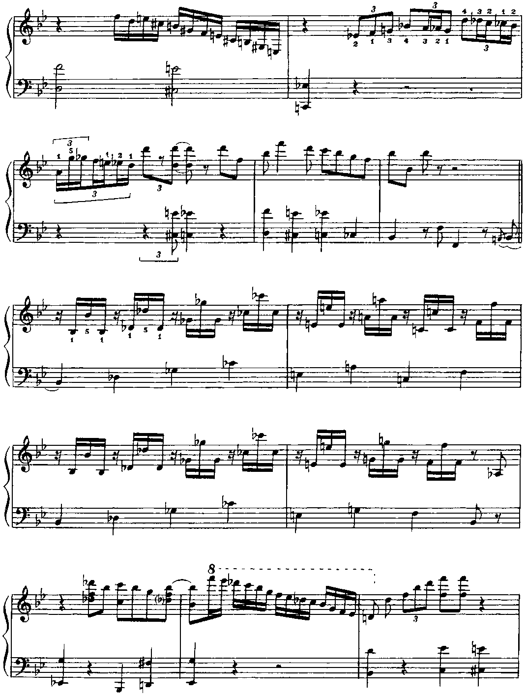 Для того чтобы должным образом ощущалась метрическая пульсация, имеет смысл представить себе, что в исполнении участвует ритм-группа. Полифоничность изложения требует особого внимания к мелодической линии каждого голоса. В "бридже” некоторые аккорды выпущены; это продиктовано, во-первых, соображениями удобоисполнимости и, во-вторых, стремлением обеспечить большую ясность артикуляции. (Примеч. автора.) Структура пьесы — интродукция (8 т.) + ААВА (8+8+8+8 т.) + интермедия на тоническом органном пункте (12 т.) + А (8 т.) + кода (9 т.). "Бридж” (восьмитакт В формы ААВА) контрастирует полифоническому окружению не только в интонационногармоническом аспекте, но и с точки зрения фактуры: он изложен так называемыми блок-аккордами (правая рука дублирует мелодию левой руки октавой выше и, кроме того, заполняет образующиеся октавные промежутки аккордовыми тонами; однако в ряде случаев такие октавно-аккордовые дублировки отсутствуют — это обстоятельство отражено в приведенном выше авторском пояснении). И еще — небольшой лингвистический комментарий. Английское идиоматическое выражение "Get off my back” означает "Отвяжи(те)сь от меня" (буквально — ”от моей спины"), "Оставь(те) меня в покое", "Отстань(те) от меня", "Не приставай(тс) ко мне”, "Не трогай(те) меня" и т. п. Фамилия великого немецкого полифониста звучит (привожу фонетическую транскрипцию) [bah], в англо-американском произношении — [ba:h] или же [ba:k], то есть очень похоже на слово back [bask] (разница лишь в окраске гласного звука). Таким образом, в названии этой пьесы (напоминающей бахов-ские двухголосные инвенции и относящейся к стилю baroque jazz — "джаз-барокко") Дж. Ширинг пользуется игрой слов; он как бы говорит: "Да не трогайте же вы моего Баха (как я его понимаю), оставьте его в покое — и меня заодно". Поначалу я хотел было остановиться на таком варианте перевода: "Отстаньте от меня и от моего Баха" (может быть, так и надо было сделать). Важно, что знаменитый слепой пианист и композитор (англичанин, подолгу живший в США), по всей вероятности, хотел подчеркнуть свое право на творческое преломление традиций И. С. Баха в русле джазовой стилистики. (Примеч. ред.-сост.)