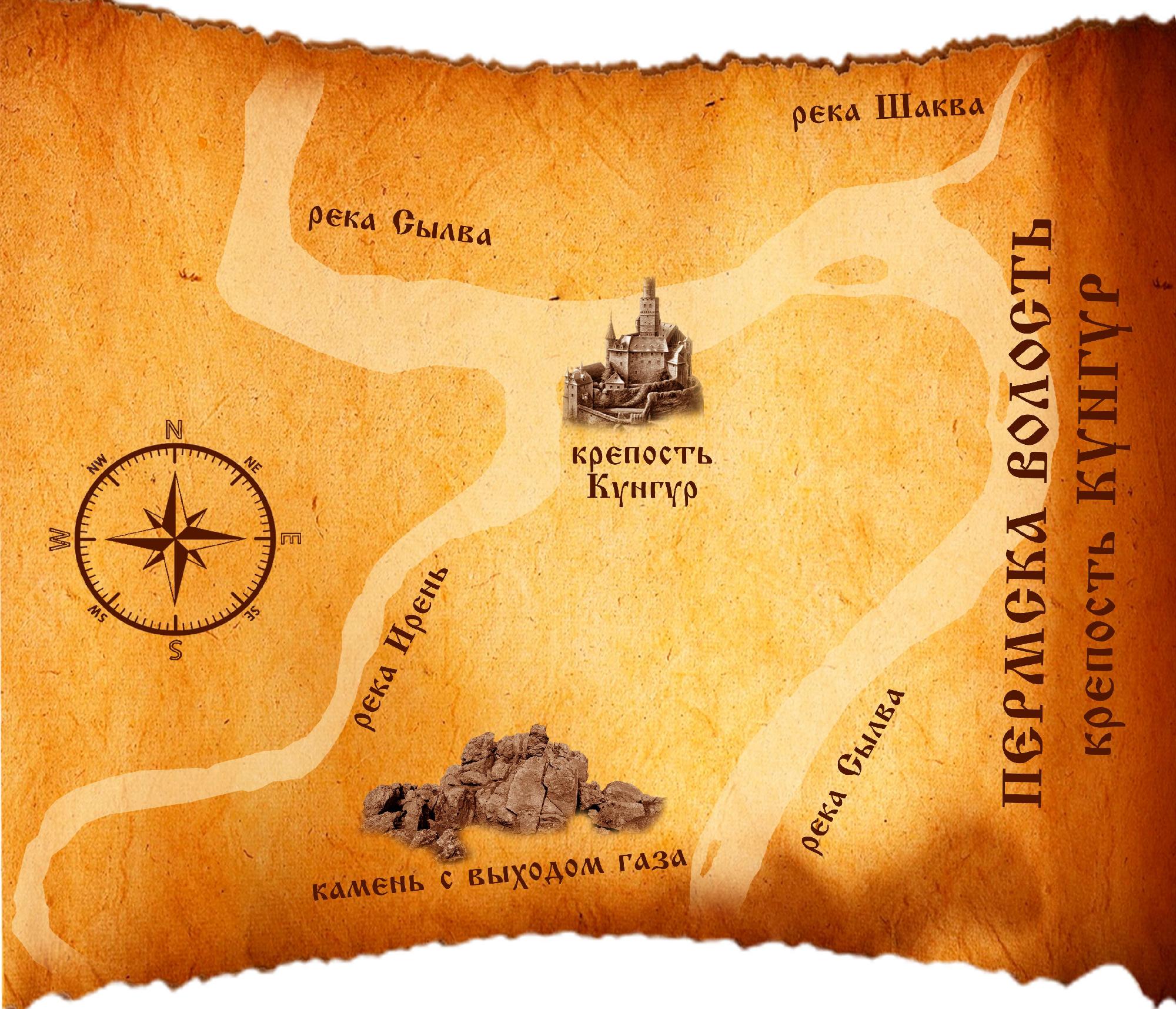 Делаю факел, его поджигаю, держа на вытянутой руке, медленно, со всей предосторожностью, чуть согнув ноги в коленях, чтобы была возможность быстро отпрыгнуть, подхожу к началу проёма, но в него не захожу, прижимаюсь вплотную к скале с внешней стороны и правой рукой забрасываю в глубину теснины горящий факел. Происходит тихий взрыв, вернее хлопок с огненной вспышкой, взметнувшейся вверх на три метра и моментально погасшей, и всё. Выждав двадцать секунд, заглядываю в проём. На расстоянии десяти метров перед поворотом теснины лежит потухший факел. Анализирую произошедшее: "Газ в проёме действительно скопился, но в очень небольшом количестве. От горящего факела он возгорелся и взорвался, ударной волной погасив факел. Значит сейчас в теснине скопившегося газа нет, а есть только тот, который выходит из земли". Захожу в проём, двигаюсь по теснине, дохожу до поворота, делаю еще три шага и останавливаюсь как вкопанный. В пяти сантиметрах над лужицей, как будто вися в воздухе, горит пятнадцати сантиметровый столбик голубоватого пламени. В голове носится рой мыслей. Пытаюсь их поток остановить, но получается плохо. Останавливаюсь на одной: «У меня есть вечный огонь!» Остальные мысли надо привести в порядок, поэтому решаю продолжить движение. Оставшуюся до перешейка территории девственного леса обследовал два часа. Каких-либо новых находок не обнаружил, всё такой же тяжелый лес с небольшим вкраплением скальных пород и обрывистыми берегами обоих рек с высотой около семи метров. Сам перешеек, около двухсот метров, между реками Сылвой и Ирень, метра на три ниже полуострова и лес на нем больше лиственный, с преобладанием березы. Бурелома значительно меньше. Видимо, полуостров раньше был островом, а перешеек образовался значительно позднее от наносных пород двух рек. Если над перешейком поставить стену, то проход к Кунгуру полностью с перешейка будет закрыт. Но это вопрос не сегодняшнего дня. Дальше обследовал территорию не так тщательно. Вдоль берега реки Ирень прошел два километра, после чего река вверх по течению повернула на юг. Пройдя еще на восток километров пять, вышел к небольшой речушке, шириной метров десять, несущую свои воды на север. Форсировать речку не стал и вдоль ее берега двинулся вниз по течению. По привычки капнул грунт. Шлиховая проба помимо глины, содержала вкраплениями мелких частиц каменного угля и меди. Чтобы более детально исследовать, нужно подниматься вверх по течению речки, на что времени нет. Делаю пометки в блокноте на будущее, после чего продолжил движение вниз по течению, периодически беря пробы грунта. В пути я уже больше десяти часов, принял решение вставать на ночлег. Под раскидистой ивой обнаружил небольшой пляж, где обустроил лагерь. Утром продолжил движение вдоль русла речки, продолжая брать пробы грунта и где-то через три километра наткнулся на выход почти на поверхность гипса, залегавшего под верхним слоем почвы. Больше ничего интересного вдоль речки не обнаружил и через два часа, пройдя около девяти километров, вышел на берег Сылвы практически напротив ледяной пещеры. Возвращался к перешейку напрямик через лес. Путь занял три часа, а еще через тридцать минут вышел к гранитной скале с вечным огнем. Хотя за время моего хождения, прошёл небольшой дождик, горение пламени не изменилось. «Ну, что же, пора возвр