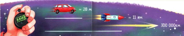 Впрочем, может быть, и без всяких «волшебных» тоннелей космонавты когда-нибудь смогут совершать путешествие во времени, летая к обычным звёздам? Но и для этого придётся подождать ещё много-много лет, пока у землян появятся космические корабли, которые могут летать почти так же быстро, как лучи света. Без таких звездолётов не обойтись, потому что даже на них лететь нужно будет к ближайшим звёздам не дни и не месяцы, а долгие годы. Представим себе, как будет происходить такое путешествие к звёздам. Как и обычному автомобилю или самолёту, чудесному звездолёту придётся сначала разогнаться (почти до скорости света), затормозить при подлёте к выбранной звезде, а затем отправиться в обратный путь. Но чтобы вернуться домой, звездолёт снова должен будет набрать скорость, а потом затормозить перед посадкой на Землю.
