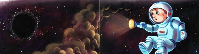 Будем наблюдать за звездолётом, летящим к чёрной дыре, на котором есть передатчик, посылающий нам сигналы. Мы принимаем эти сигналы и замечаем, что они становятся всё слабее и слабее. Понятно, что это происходит из-за того, что звездолёт удаляется от нас. Но вдруг сигналы исчезают совсем. Что случилось с космонавтом, проник ли он внутрь чёрной дыры, мы не знаем. А с космонавтом, оказывается, пока ничего не случилось. Он продолжает приближаться к ужасному месту в центре чёрной дыры и не подозревает, что мы перестали получать сигналы звездолёта. Причём космонавт не только не волнуется, но даже развлекается, глядя в иллюминатор своего космического корабля. Там, почти как в кино, перед ним пронесётся вся история Вселенной. Может быть, он даже увидит Большой Взрыв, после которого появилась наша Вселенная!