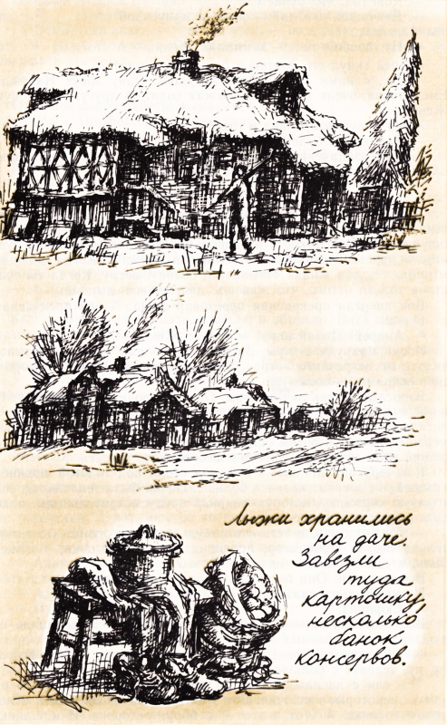 Отец пришел с работы и сказал: — Мы с Профессором сняли дачу. — Зимнюю? — спросила мама радостно. — А Женю будем брать с собой? — спросил Андрей. Дача стояла в лесу, белки летали по соснам. Лыжню прокладывал Адмирал — адмиралы и зимой остаются адмиралами. Они шли гуськом, лыжи шелестели по снегу, рюкзаки за спинами, а впереди длинное воскресенье, бесконечный голубой снежный день. Они вошли в этот дом, долго и весело топали ногами на крыльце, чтобы не натащить в сени снег. Потом Жадюга с тетей Катей топили печку. Профессор с дядей Павлом притащили из подпола мешок картошки и хвалились: — Кто все предусмотрел? — Кто картошку завез? Юлька бегала из комнаты в кухню и обратно. Вика пела свои роскошные эстрадные песни. Синицы прыгали за окнами. — Зачем сейчас печку топить? — спросила нетерпеливая Юлька. — Мы же уходим на лыжах… На целый день. Да? — Ну, целый день нам, пожалуй, не проходить, — резонно заметил Адмирал. — Мы сюда вернемся, — мечтательно сказала тетя Марина, — а нас ждет тепло и горячая картошка. Да? — Профессор, оставь ты картошку, сами почистим. Разговоры самые обычные, самые житейские. Но лица, лица говорили совсем о другом. Как рады они видеть друг друга! И как хорошо им всем вместе! Потому что редко они встречаются. Когда еще придет чей-нибудь день рождения! Редко бывают дни рождения. А вот простое воскресенье, они все здесь и рады друг другу. И в следующее воскресенье снова приедут сюда. Женя сидел прямо на полу, спиной прислонился к стенке. — Андрей, как думаешь, можно сюда в следующий выходной взять одного человека? — Адмирала спроси. А кого, Женя? — Ну, одну девочку, в общем. — Адмирал, у нас с Женей вопрос. Можно нам в следующее воскресенье пригласить еще двух человек? Адмирал открывал консервы, он сурово глянул и сказал строго: — Каких еще двух человек? Все засмеялись, только мама глядела серьезно. — Адмирал, — ответил Андрей, — мы за этих людей ручаемся, правда, Женя? — Конечно. Мы ручаемся. — Девчонок, что ли? — опять с напускной строгостью спросил Адмирал. — Ну, вообще-то… — замямлил Женя. — А что? Андрей ткнул его локтем в бок: чего темнить? — Да, с нами приедут две девушки. Одну зовут Надежда Емельянова, очень хорошо на лыжах ходит. А другую как зовут, Женя? Женя вдруг помрачнел и ответил: — Там видно будет. Андрей озадаченно замолк. Неужели Женя тоже хотел пригласить Надежду? А ведь очень может быть.