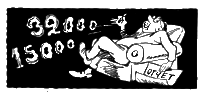 Рекорд по затяжным командировкам поставил один Иван Иванович из учреждения с выразительным названием «Пенькотрест». 251 день в роли толкача по отгрузке лесоматериалов! Это звучит не менее романтично, чем жюльверновские «80 тысяч километров под водой» или «Пять недель на воздушном шаре». Для того, чтобы долго быть под водой, нужен запас кислорода. Для того, чтобы долго летать на воздушном шаре, надо сбрасывать балласт. А как пробыть в командировке 251 день, если по закону полагается не более шестидесяти? Тут нельзя не оценить находчивость работников «Пенькотреста». Они ударились в мистику и превратили своего толкача в привидение. По документам неопровержим факт, что этот Иван Иванович время от времени возвращался к себе домой. А на самом деле там и духа его не было. Привидению выплачено около 13 тысяч рублей суточных и квартирных…