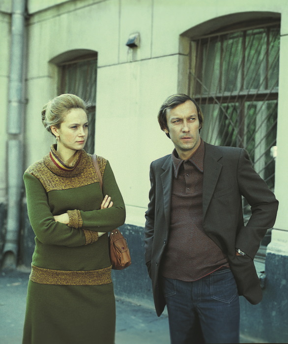 Снятая в 1974 году по рассказу Григория Горина преддипломная работа Вадима Абдрашитова «Остановите Потапова!» (засчитанная впоследствии как дипломная) дает полное представление о мировоззрении входящего в профессию и жизнь поколения семидесятников. И не случайно в фильме появляется задыхающийся «голос» этого поколения – Владимир Высоцкий, пришедший на смену шестидесятнику Окуджаве[2]. Высоцкий изрыгает строки Пастернака в постановке «Гамлета» на сцене Таганки, но у Абдрашитова возникает не как актер, играющий роль, но как символ наступившего долгого сумеречного времени «после „оттепели“». Мы проводим с работником НИИ Потаповым (Валентин Смирнитский) один день, в течение которого он врет начальнику, учительнице сына, жене, дружинникам; скорбит на похоронах товарища; выпрашивает у коллеги два дефицитных билета в театр, берет с собой молодую коллегу, но оставляет ее после первого акта и отправляется – забежав в отделение милиции и нацепив повязку дружинника – к любовнице. Все эти действия Потапов проделывает почти без эмоций, меняя маски в зависимости от ситуации: раскаяние, самоуверенность, скорбь, умиление, влюбленность, озабоченность. Советская критика однозначно понимала Потапова как манипулятора, лжеца и приспособленца, но сегодня в его монотонной лжи можно разглядеть то, что Алексей Юрчак в своем исследовании «Это было навсегда, пока не кончилось» определяет как «вненаходимость», – практику ускользания «нормального» советского человека от всего, что постоянно над ним довлеет. Большую часть дня Потапов как бы отбывает повинность, участвует в бессмысленных действиях, исполняя свою партию с минимальными душевными и физическими затратами. «„Нормальный“ советский человек, – пишет антрополог Александр Беляев в предисловии к русскому изданию книги Юрчака, – не является ни активистом, ни диссидентом. Он участвует в формировании и воспроизводстве официального идеологического дискурса – но делает это в основном на уровне формы высказываний, одновременно наделяя их новыми, неожиданными смыслами. В результате такого отношения к высказываниям и ритуалам советской системы „нормальный человек“ создает новые пространства свободного действия, которые официальный дискурс системы не в состоянии описать и которых система не ожидает, поскольку они не совпадают с ее дискурсом, но и не находятся в оппозиции к нему. <…> Эти особые пространства свободы – автор называет их пространствами вненаходимости – могут появляться в самых разных контекстах» (3). Именно этим словом – «вненаходимость» – удобно описывать положение Потапова, постоянно ускользающего от контроля в лице начальника, милиционера или жены. Ярчайшие иллюстрации: незаметная шахматная партия с коллегой (молодой Семен Фарада) во время скучного совещания или просмотр вместе с любовницей идущего по телевизору фильма Клода Лелуша «Мужчина и женщина» в те часы, когда он официально находится на дежурстве в народной дружине. «Смысл существования вне системы, – пишет Юрчак, – одновременно внутри и за пределами – можно проиллюстрировать фразой „вне поля зрения“» (4). Все время как будто находясь на виду, Потапов проводит значительную часть дня «вне поля зрения» – именно туда, в заповедное пространство проникает камера. Выбирая сценарий для полнометражного дебю