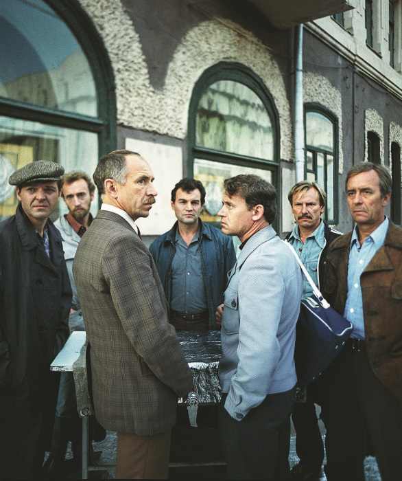 Человек, под гимн СССР прогоняющий рычанием волка, – Олег Борисов в помятой шляпе. «Слуга» – его третий совместный фильм с Абдрашитовым и Миндадзе. История симбиотических отношений подчиненного и начальника – единственный из сценариев Миндадзе, написанный с учетом органики конкретного актера. В своих дневниках Борисов упоминает современную версию «Золотого ключика», в которой Абдрашитов предлагал ему роль Карабаса[21]. Карабас – директор кукольного театра, имя его – литературный псевдоним для любого манипулятора; вероятнее всего, речь шла именно о «Слуге». Впервые Борисов снялся у Абдрашитова в «Поезде», и этот кастинг дался нелегко; Михалков перед тем пытался пробить его в «Родню», на роль бывшего мужа героини Нонны Мордюковой, но не преуспел: актеру на два года запретили работу на «Мосфильме», после того как он в середине процесса со скандалом ушел с картины Александра Зархи о Достоевском. Борисов вообще славился своей несговорчивостью; Гребнев в «Записках последнего сценариста» вспоминает, как актер прогнал его со съемок «Дневника директора школы»: «Что вы тут все ходите? Дайте нам работать. Вы свое дело сделали, написали – отдыхайте!» (57) По странному совпадению у Зархи хлопнувшего дверью Борисова заменил будущий антагонист из «Поезда» – отчаянно нуждавшийся в работе и деньгах Анатолий Солоницын. Другое совпадение: оба они при рождении получили необычные иностранные имена, Альберт и Отто, и оба русифицировали их после войны. Инцидент с «Двадцатью шестью днями из жизни Достоевского», за роль в котором Солоницын удостоился берлинского «Золотого медведя», произвел большой переполох на студии, но не омрачил отношений двух актеров: на съемках «Поезда», сценарий которого Абдрашитов называет «достоевщиной» (58), оба Достоевских отдыхали вместе, читая друг другу стихи. Донкихот из «Дневника директора школы», напрасно атакующий мельницы настоящего, в «Поезде» Олег Борисов понадобился как человек, заурядная внешность которого маскирует внутреннее подполье. «Как сейчас помню, сидели у меня и думали, – вспоминает Миндадзе, – где нам найти актера, который бы не только играл, чтобы у него внутри было что-то невысказанное, и от этого было ощущение какого-то подтекста, нераскрытого. Так мы пришли к Борисову. Актер актеру рознь: есть люди, которые добавляют, умножают на себя. Олег Иванович – он привносил еще себя. В результате получалось то, что я имел в виду, но не написал. Сценарий не менялся, просто его присутствие, его личность налагалась на то, что было написано». Дневники Борисова, изданные под названием «Без знаков препинания», – впечатляющий (в том числе и своей возвышенной наивностью) опыт постоянной включенности в поле мировой культуры, как понималось оно советским человеком, иногда выглядывающим за пределы железного занавеса. Почти в ежедневном режиме и как будто на равных актер ведет постоянный диалог со всем, что доступно, – с Висконти, Байроном, Достоевским, Пазолини или Шекспиром, с десятками других художников. «Мне всегда интересен предел, – пишет Борисов, – крайняя точка человеческих возможностей. А если предела не существует? Этой проблемой был озадачен и Гарин[22] – достижением бесконечной власти над миром» (59). «Только Борисов, – говорил о роли следователя Ермакова Вадим Абдрашитов, – мог выразить эту раздвоен