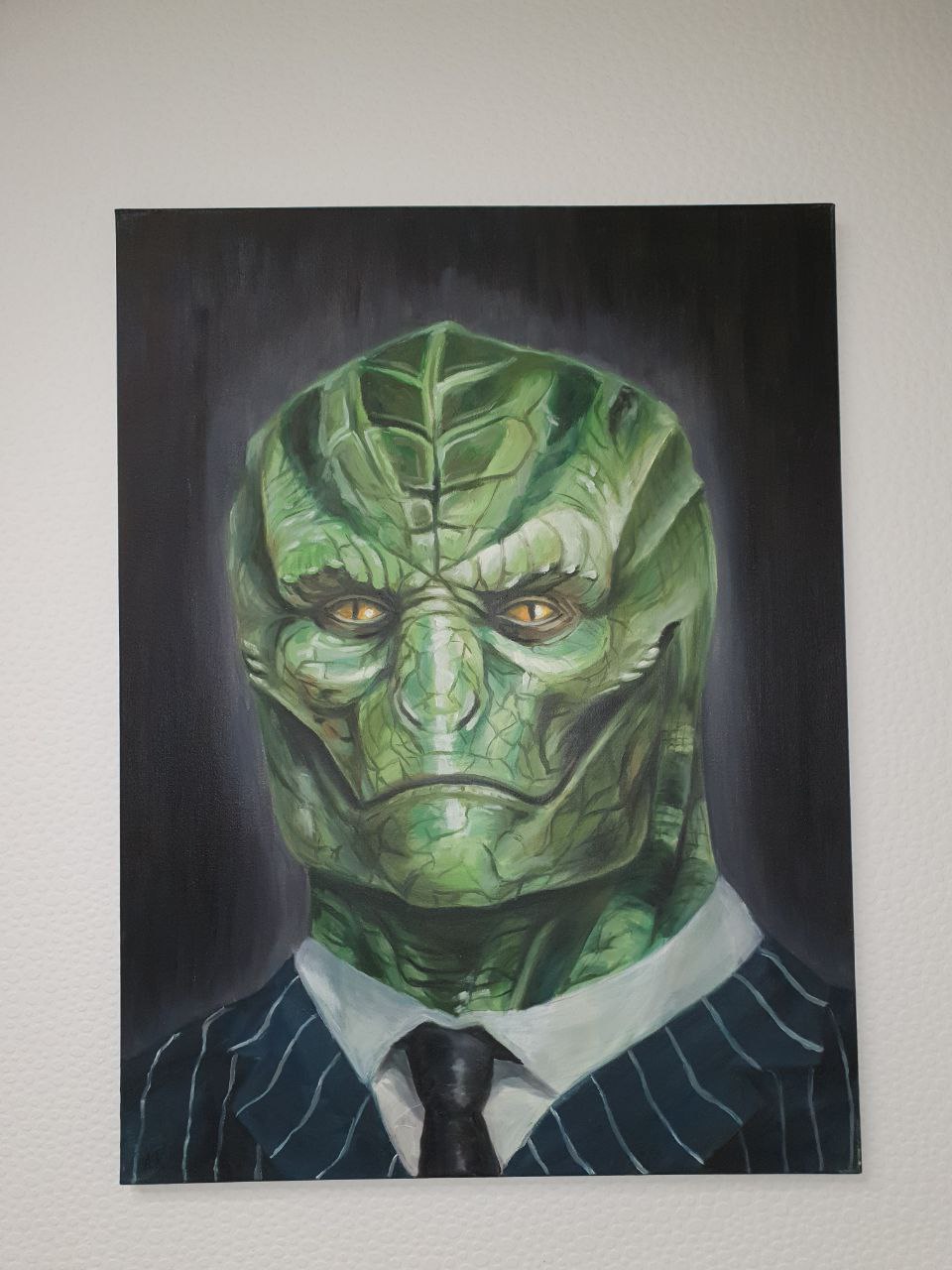 "Сьогодні вранці в одному з готельних номерів було виявлено тіло мільярдера, що мешкав там, сера Альприма. Нагадуємо, що в тому ж готелі напередодні ввечері проходила виставка, організована на честь придбання трьох ексклюзивних картин скандально відомого художника Алекса Крамера. Він відомий неординарним мисленням, своїми віруваннями в рептилоїдів і всесвітні змови. Крамер втілює тих чудовиськ на своїх полотнах. Багато прообразів він бере з пам'яток архітектури, а його жахливі персонажі настільки реалістичні, що викликають в рівній мірі, як жах, так і захоплення майстерністю автора. Художник вважає за краще залишатися інкогніто, ніхто ніколи не бачив його обличчя. Буквально вчора, відтепер покійний сер Альприм придбав три його картини за один мільйон євро, а вже сьогодні поліція висунула головну версію його смерті – суїцид. В крові загиблого, експерти виявили велику кількість снодійного змішаного з алкоголем, що найімовірніше і …"