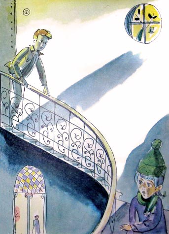 Вдруг Сашка остановился, и нога его повисла над ступенькой. Потом медленно, потрясенный, он стал пятиться назад.