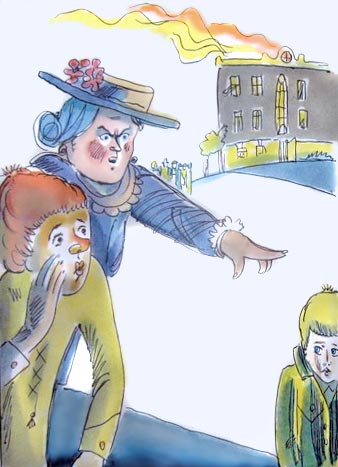 Из дома выбежала старушка, прижимая к себе клетку, в которой трепыхалась какая-то птичка. За ней выбежала другая старушка, обнимая руками фикус.