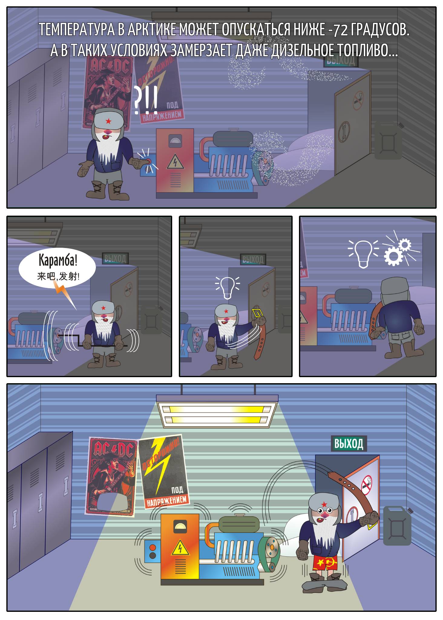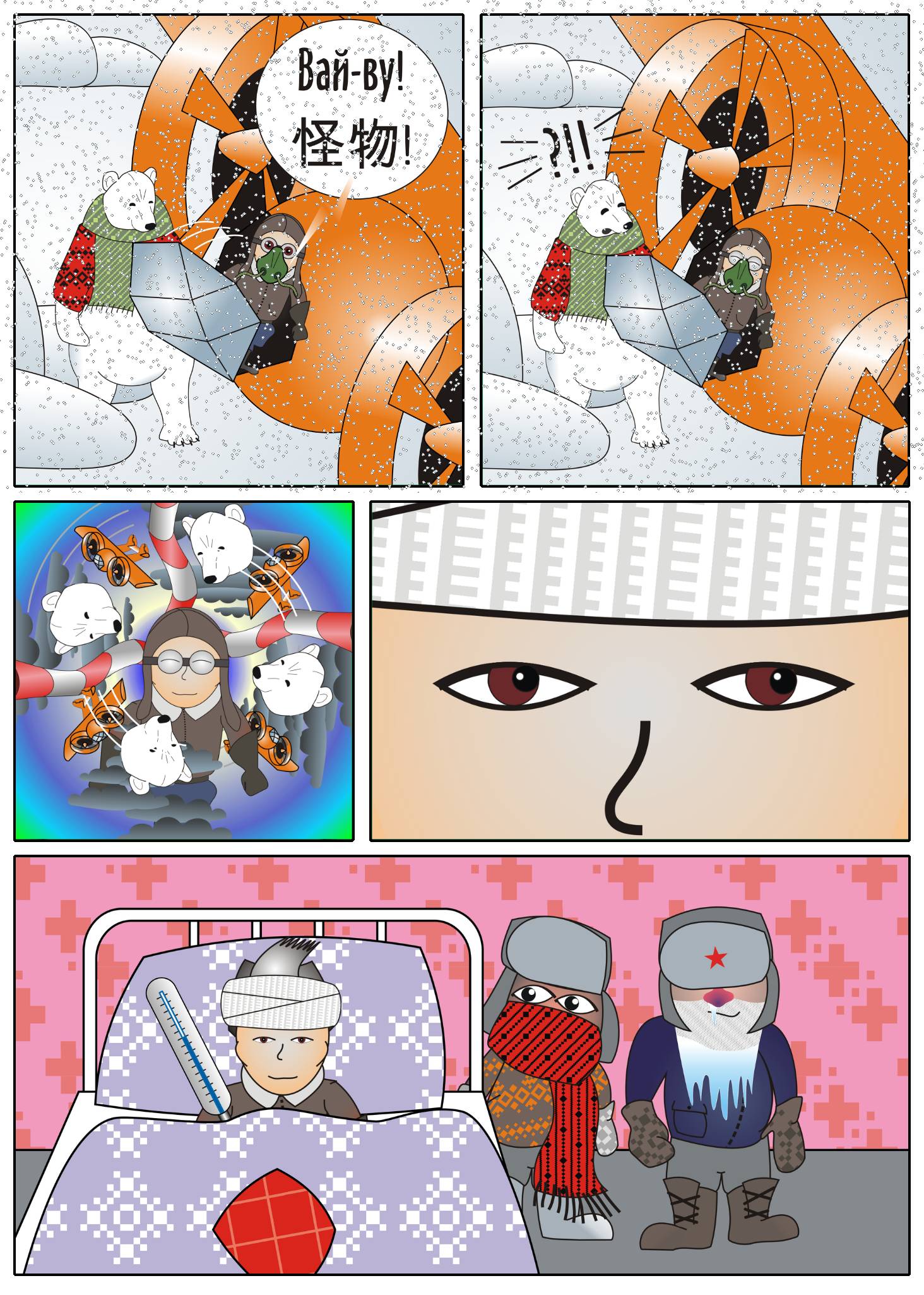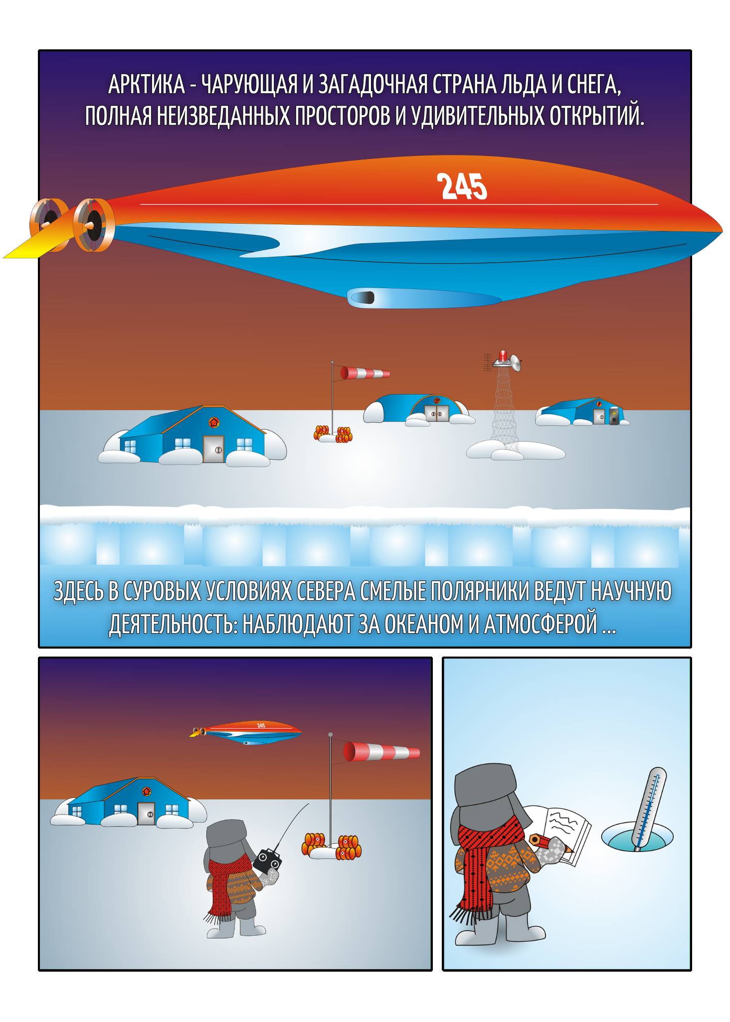 Графический рассказ (комикс) “Белые сны” о приключениях двух смелых полярников Юры и Коли и китайского летчика Мингли на дрейфующей полярной станции. Они весело и увлекательно рассказывают читателю об Арктике, проявляют смекалку и взаимовыручку и встречают много новых друзей.